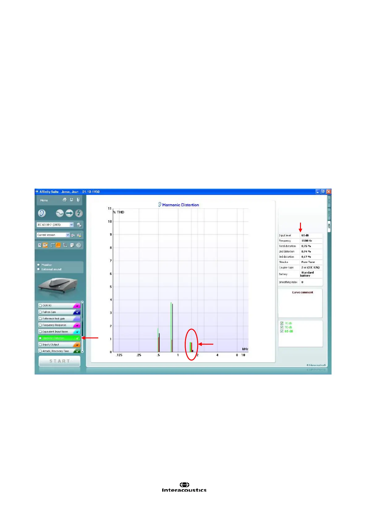 The Total Harmonic Distortion (THD) equals the total sum of all harmonics or in the Affinity