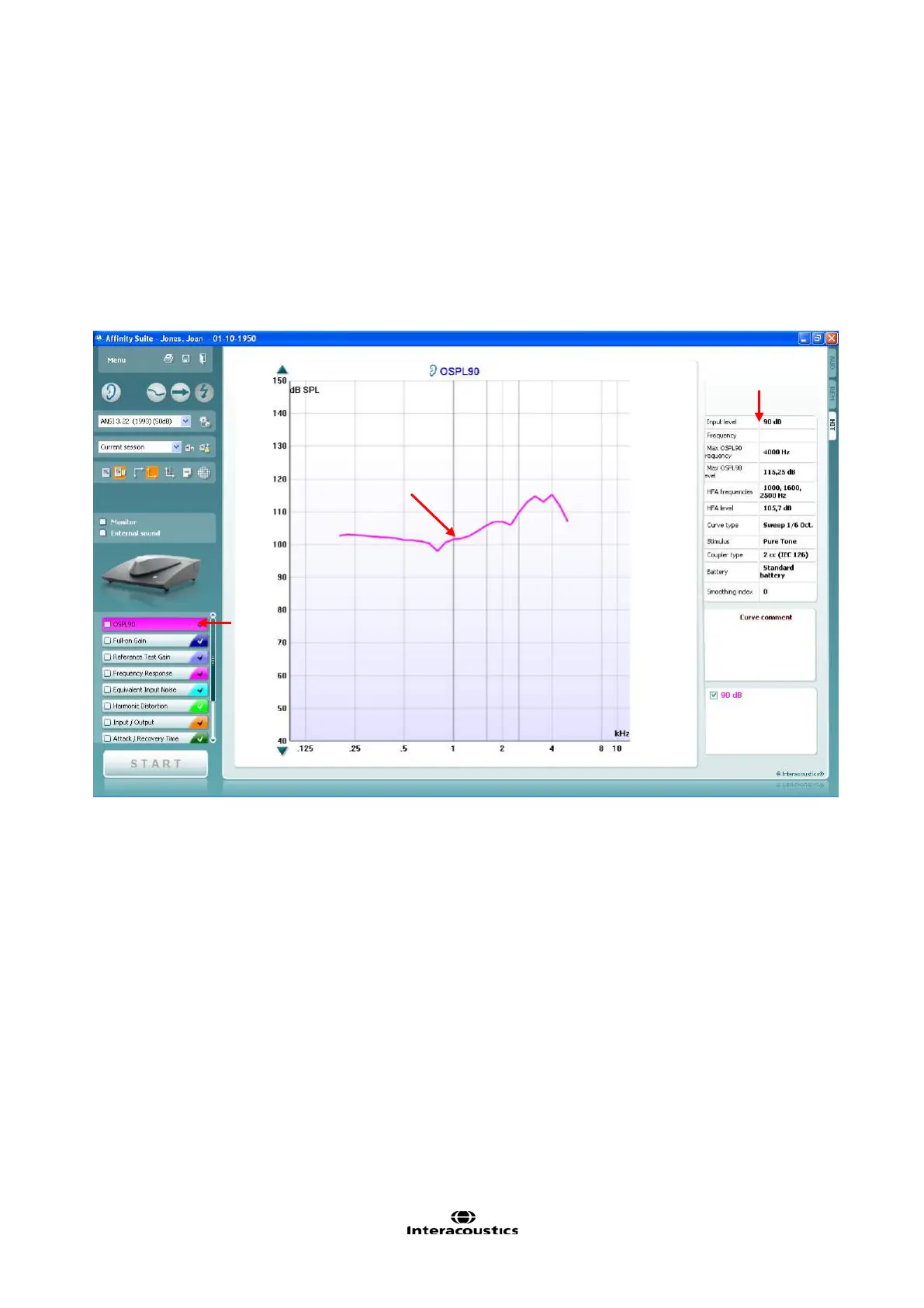 The OSPL90 is defined as the maximum output level of the hearing aid measured at an input level of 90 dB.