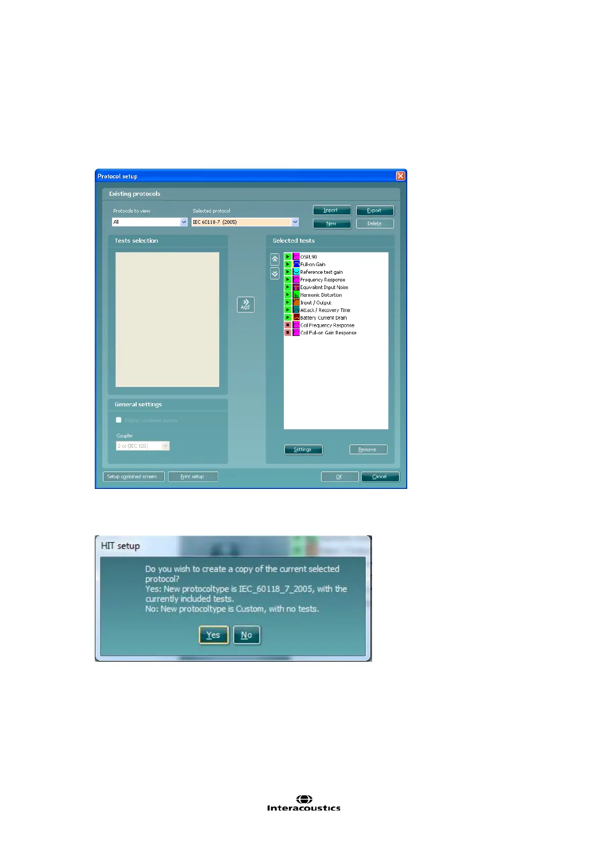 The following sections describe how to setup your own test protocol in the HIT440 setup. All setup options