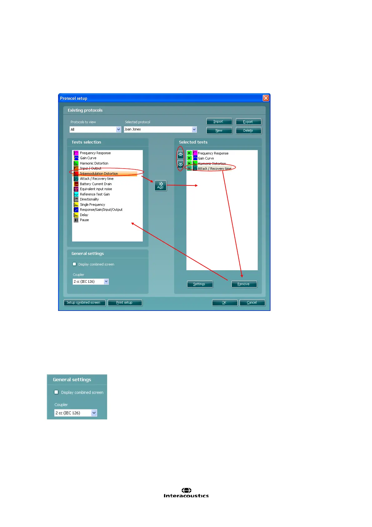 5) Select the tests to be included in the test protocol. Mark a test by clicking on it and press the Add.