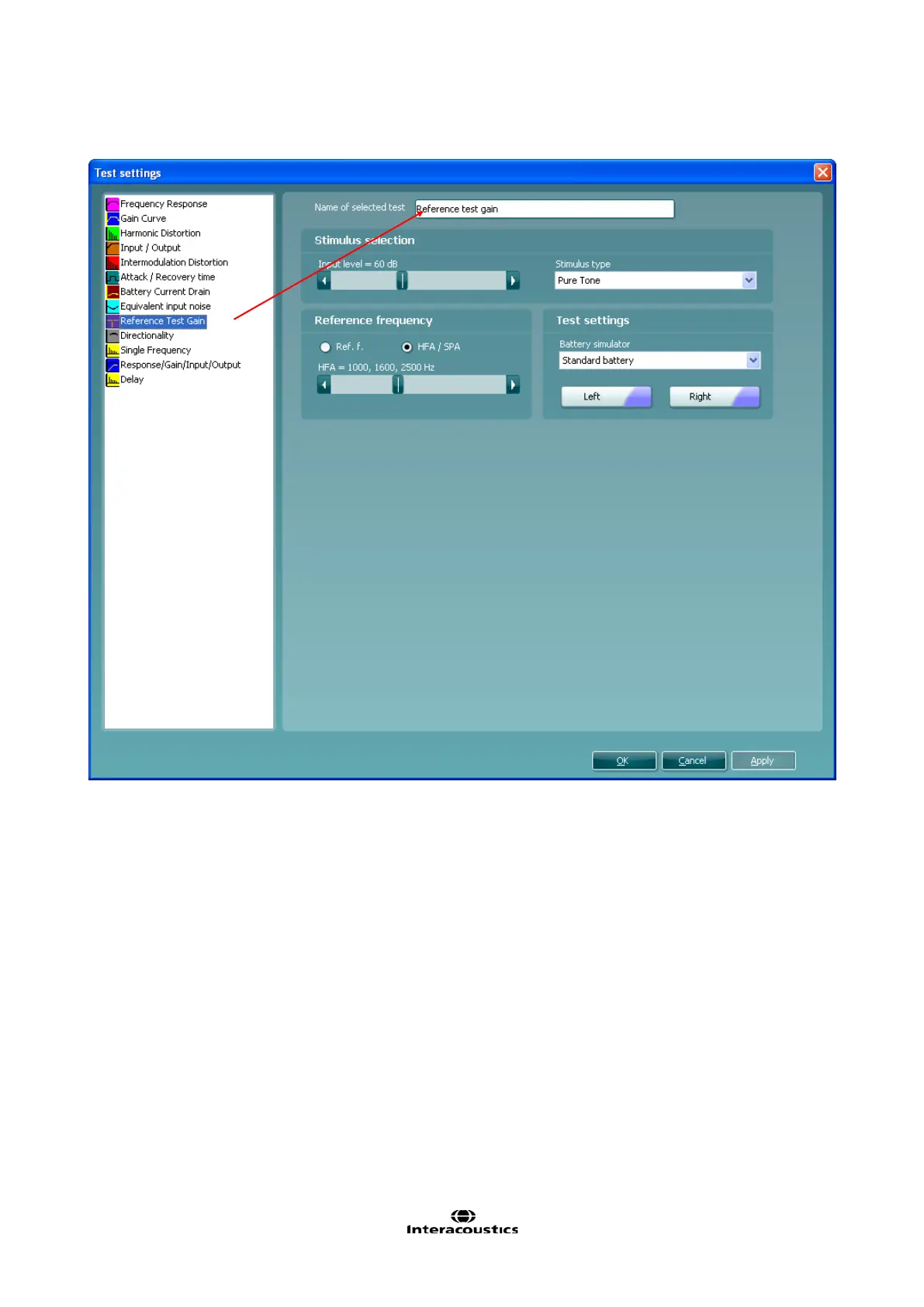 1) Ensure that Reference Test Gain is marked in the left hand side of the screen. The name of the test