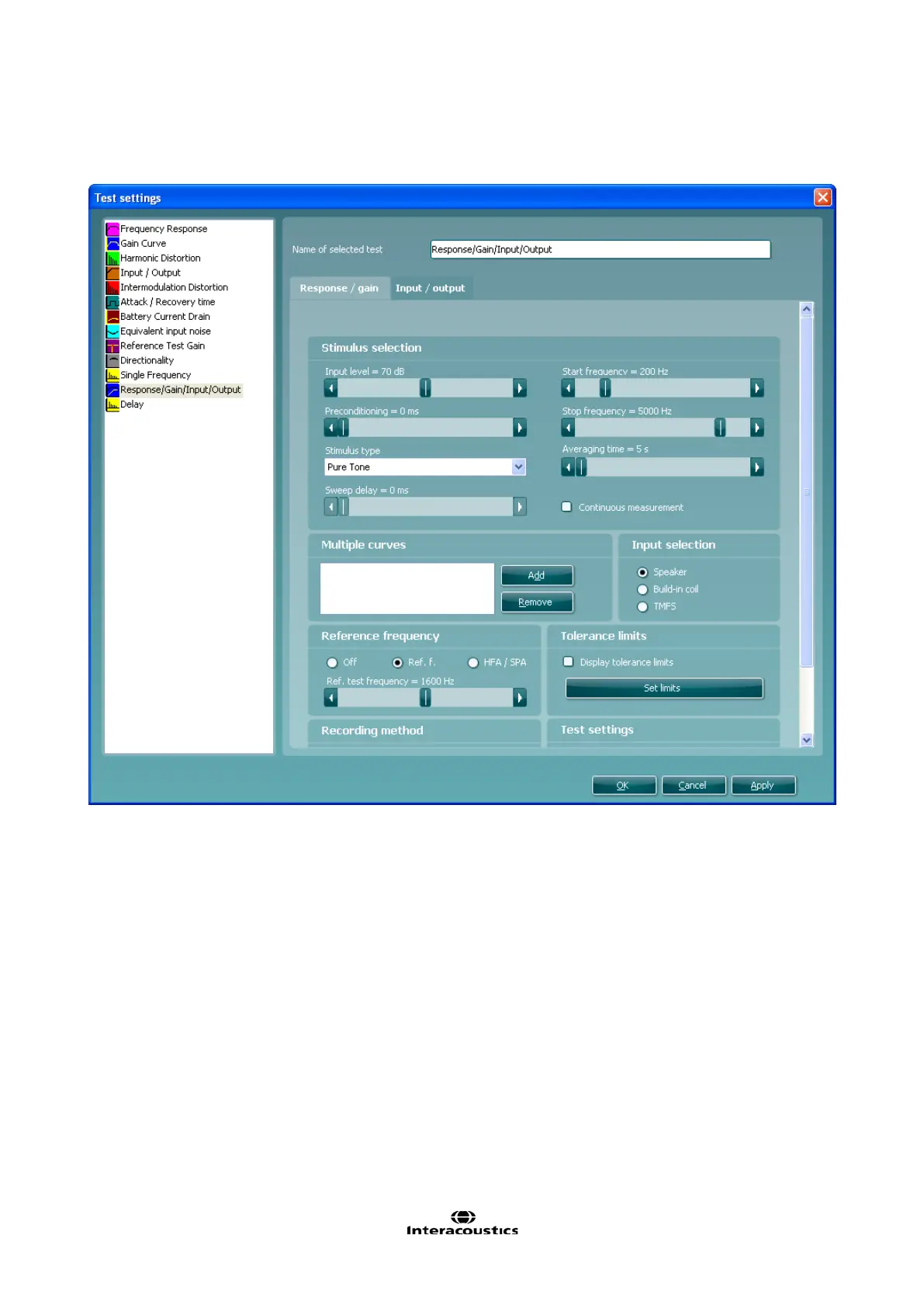 Interacoustics Equinox 2.0 - Response;Gain;Input;Output Settings