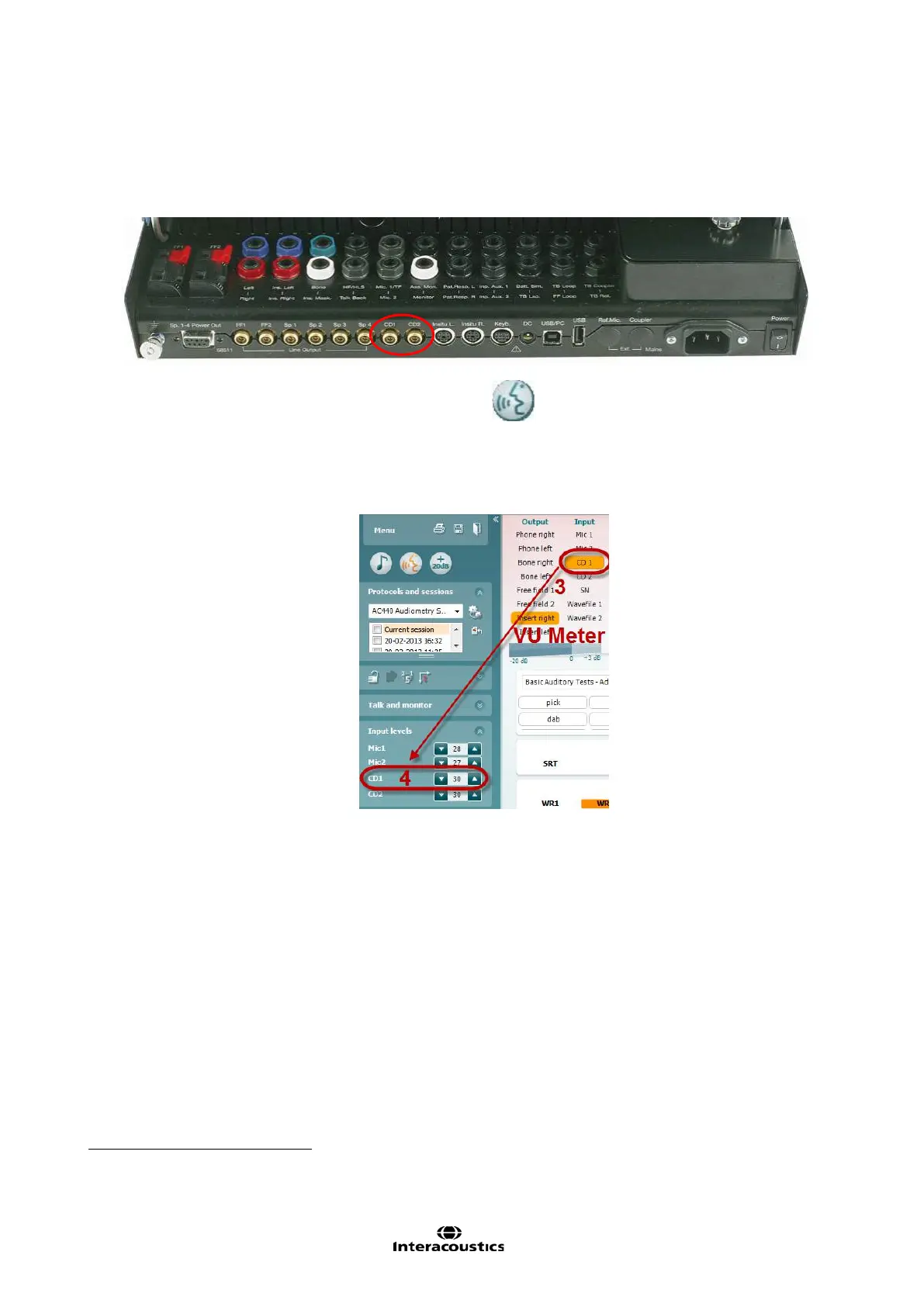 5) When the VU meter is adjusted the CD input is ready for use. Perform the speech audiometry as