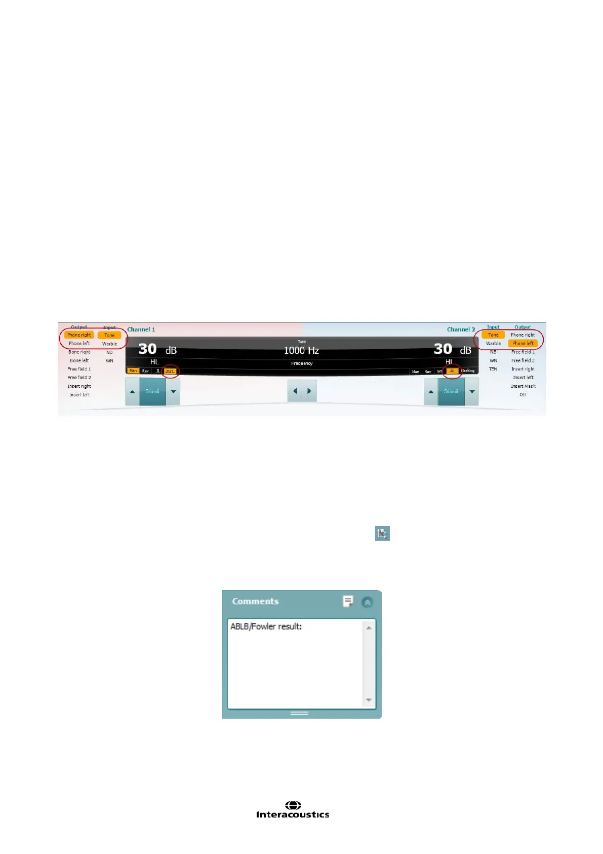 4) The ABLB is performed at frequencies where recruitment is assumed. Set the intensity level on the