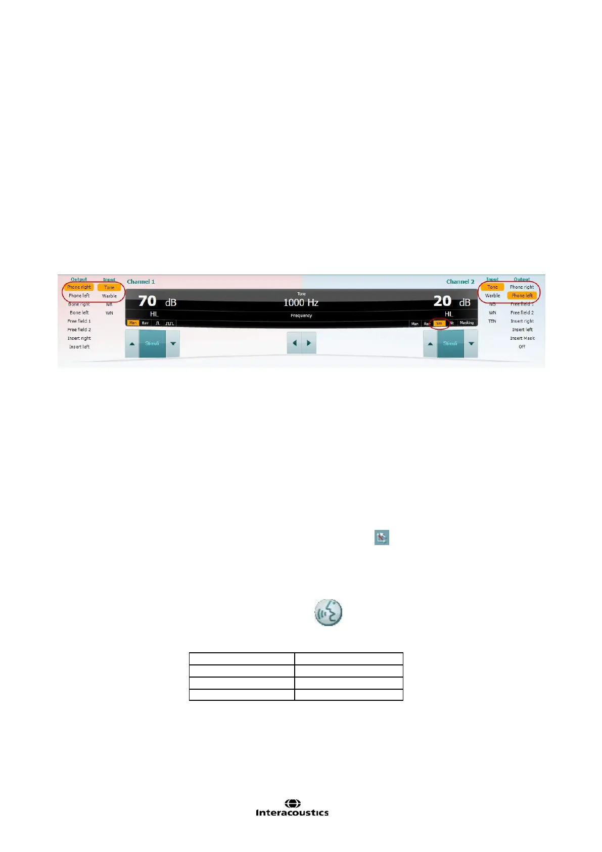 4) Use channel 2 for presenting tones to the better ear and set the intensity level to 20 dB above the