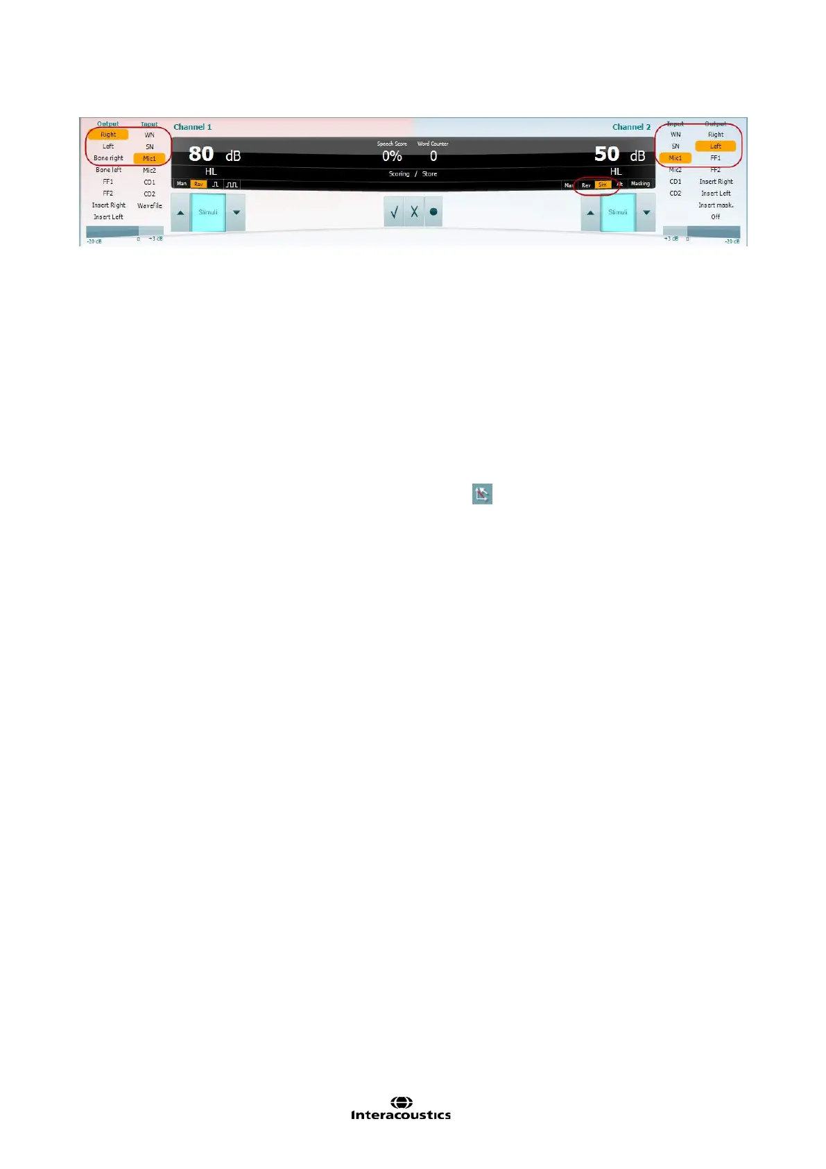 5) Use channel 2 for presenting speech to the better ear and set the intensity level to 20 dB above the