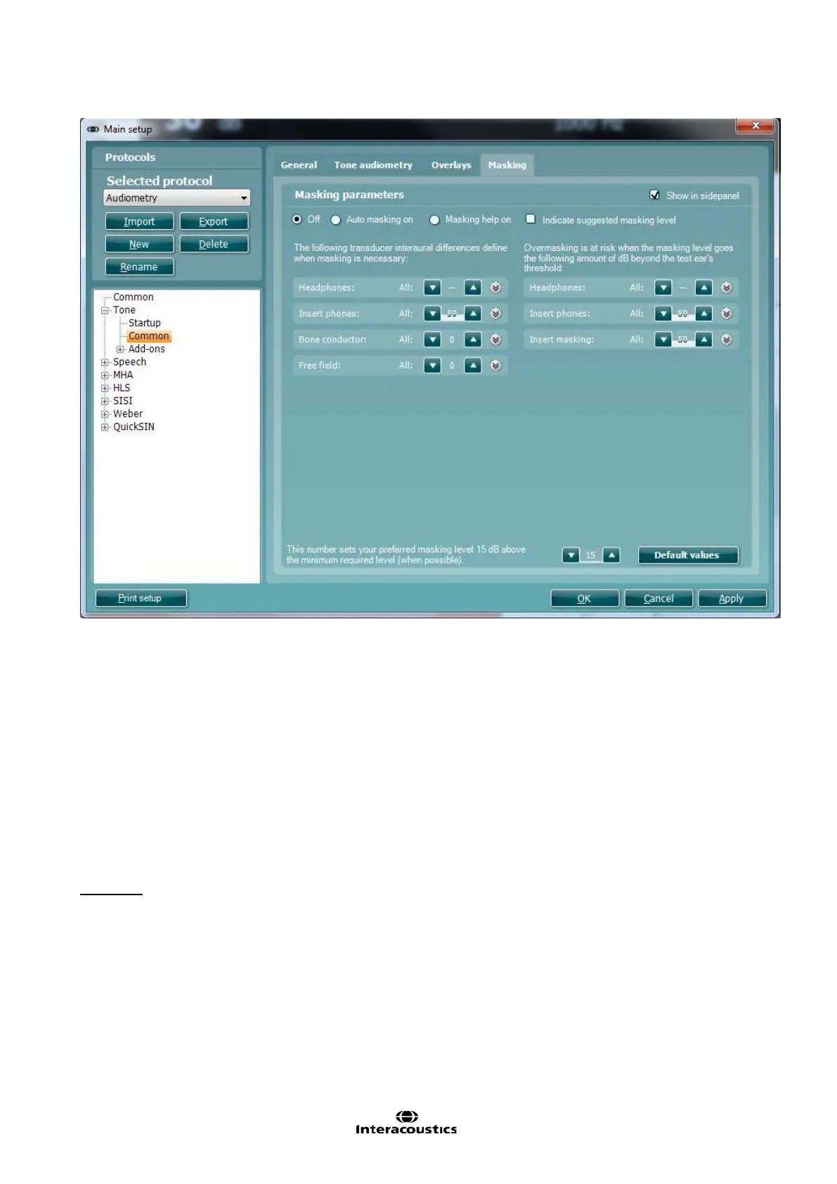 In this section the user can configure their Automasking feature by adjusting the interaural difference