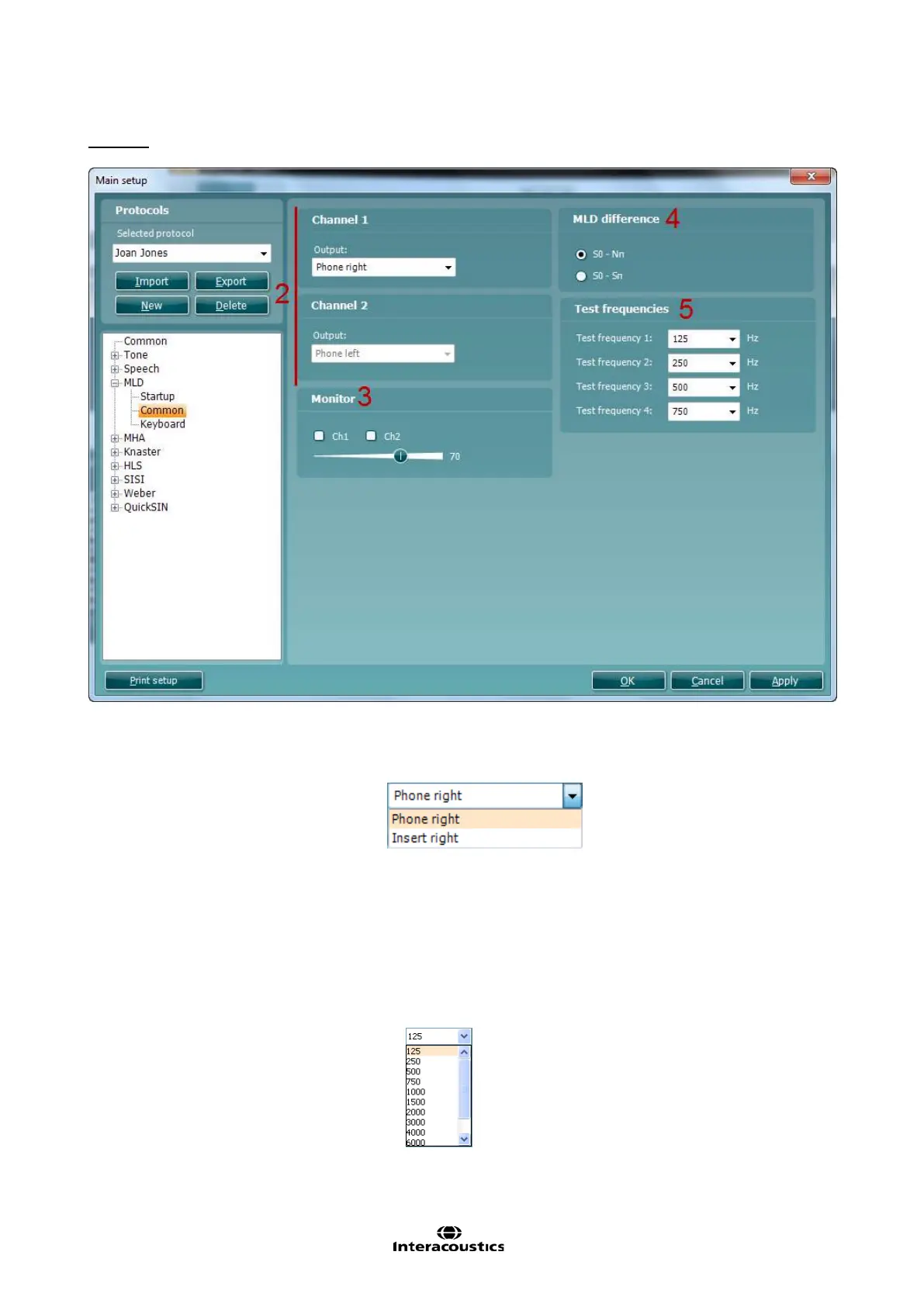 preferred test frequencies using the dropdown lists that all allow for selecting between the frequencies