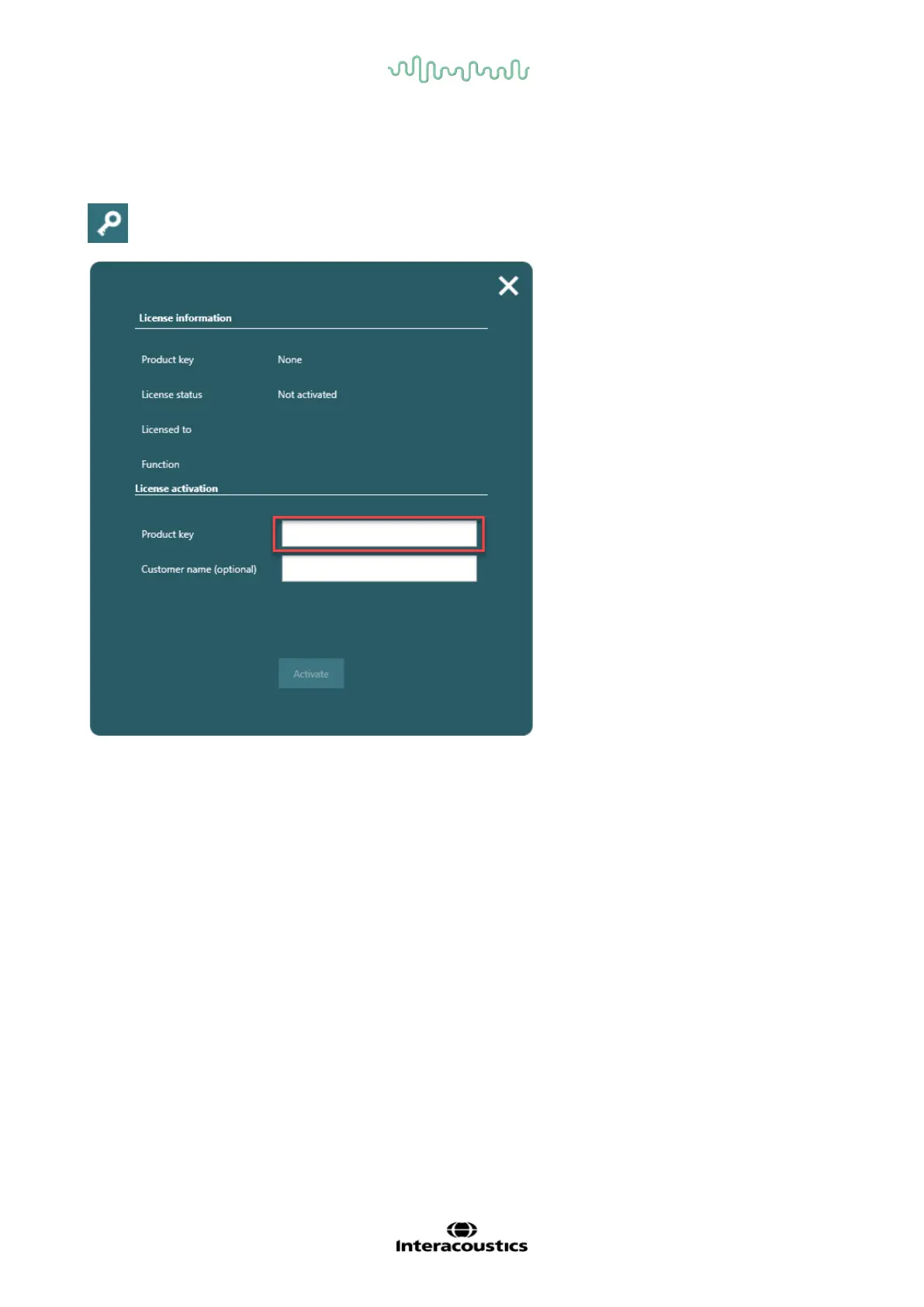 headset. To access the License key, click on the key icon at the top bar.