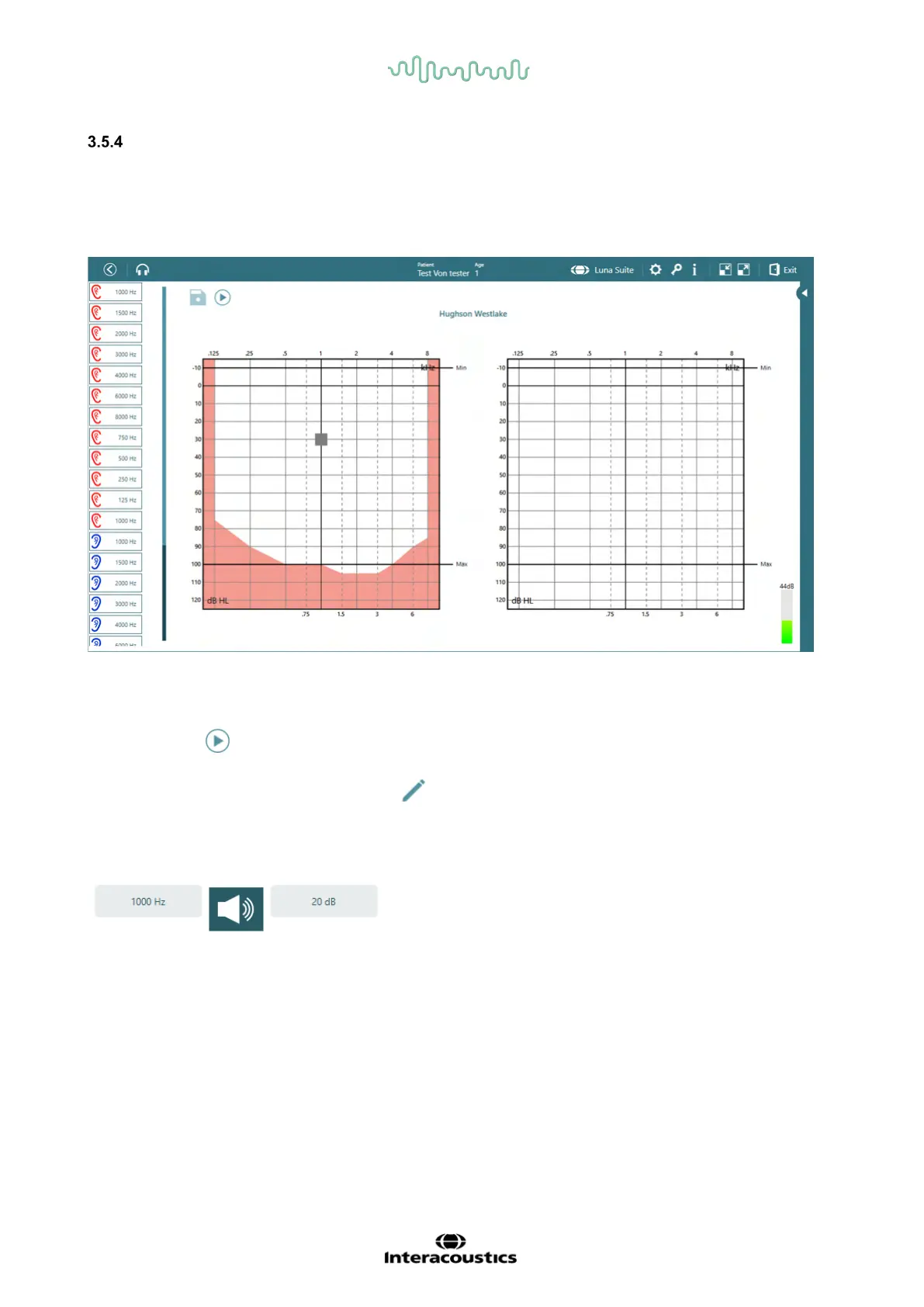 determined from 2 out of 3 similar responses (or 3 out of 5) to the tone. The test starts at 1000 Hz and at
