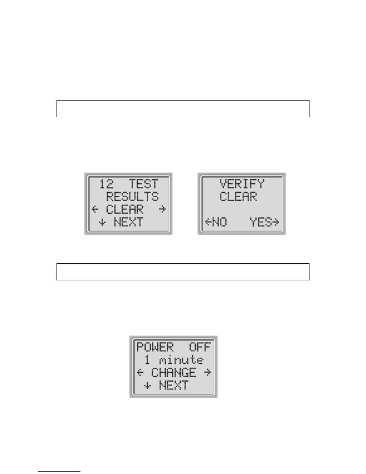 The Test Results Clear menu (Display # 19) allows the user to clear