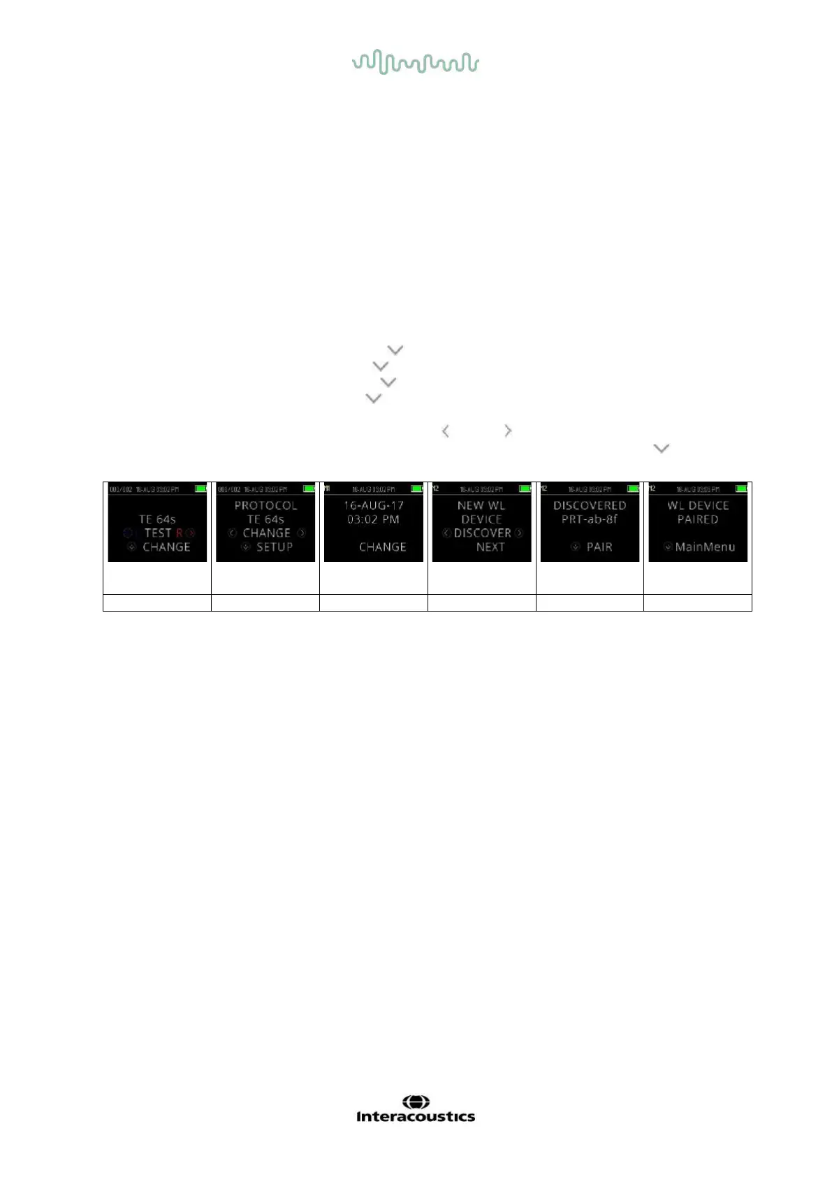 7. Wait for the device to find the printer (ensure it is switched on) and then press PAIR ( DOWN key).