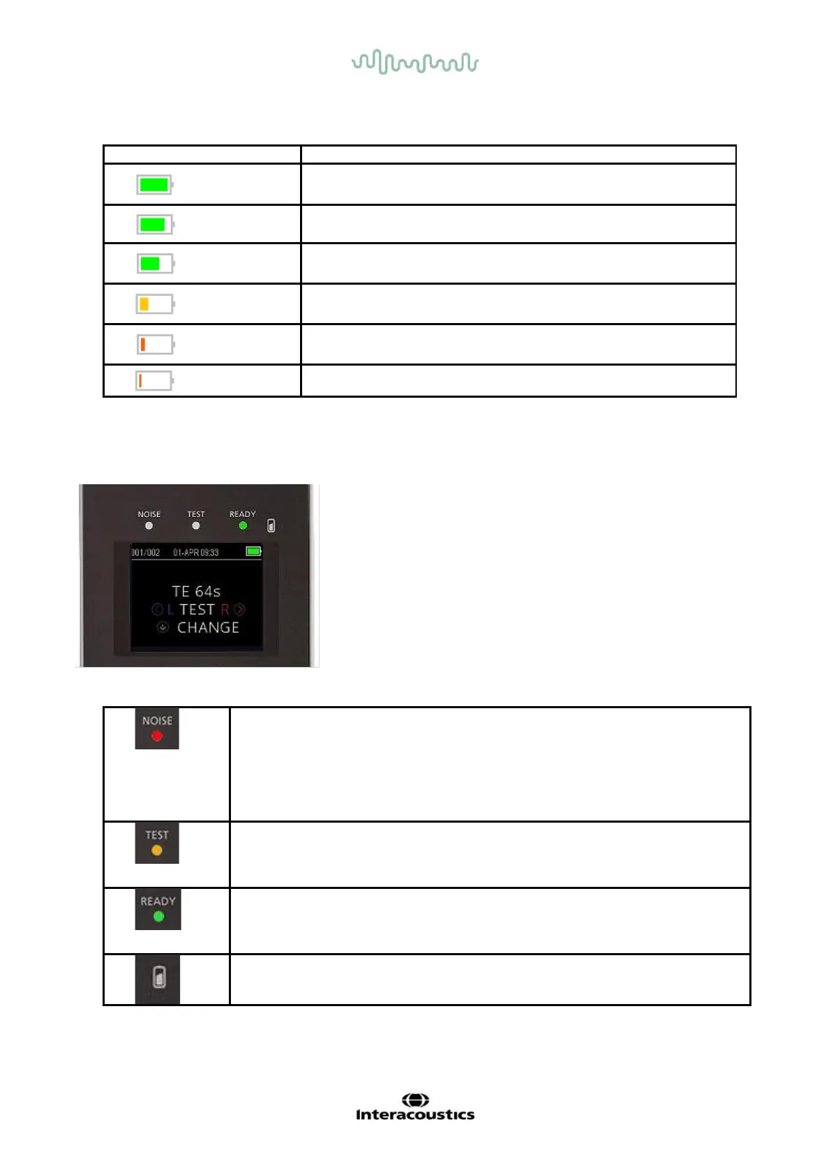 The OtoRead has 3 LED test status indicators located above the OLED display. The table below describes