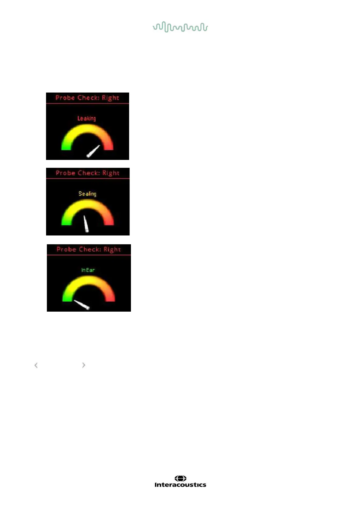 After the test ear is selected, the probe check will be begin automatically. This probe check screen displays
