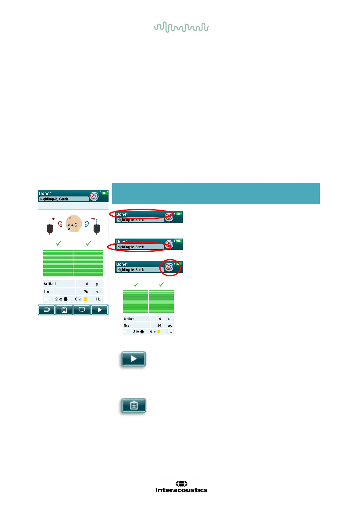 The ear selection control can also be used to toggle between the last Automated ABR test performed on the