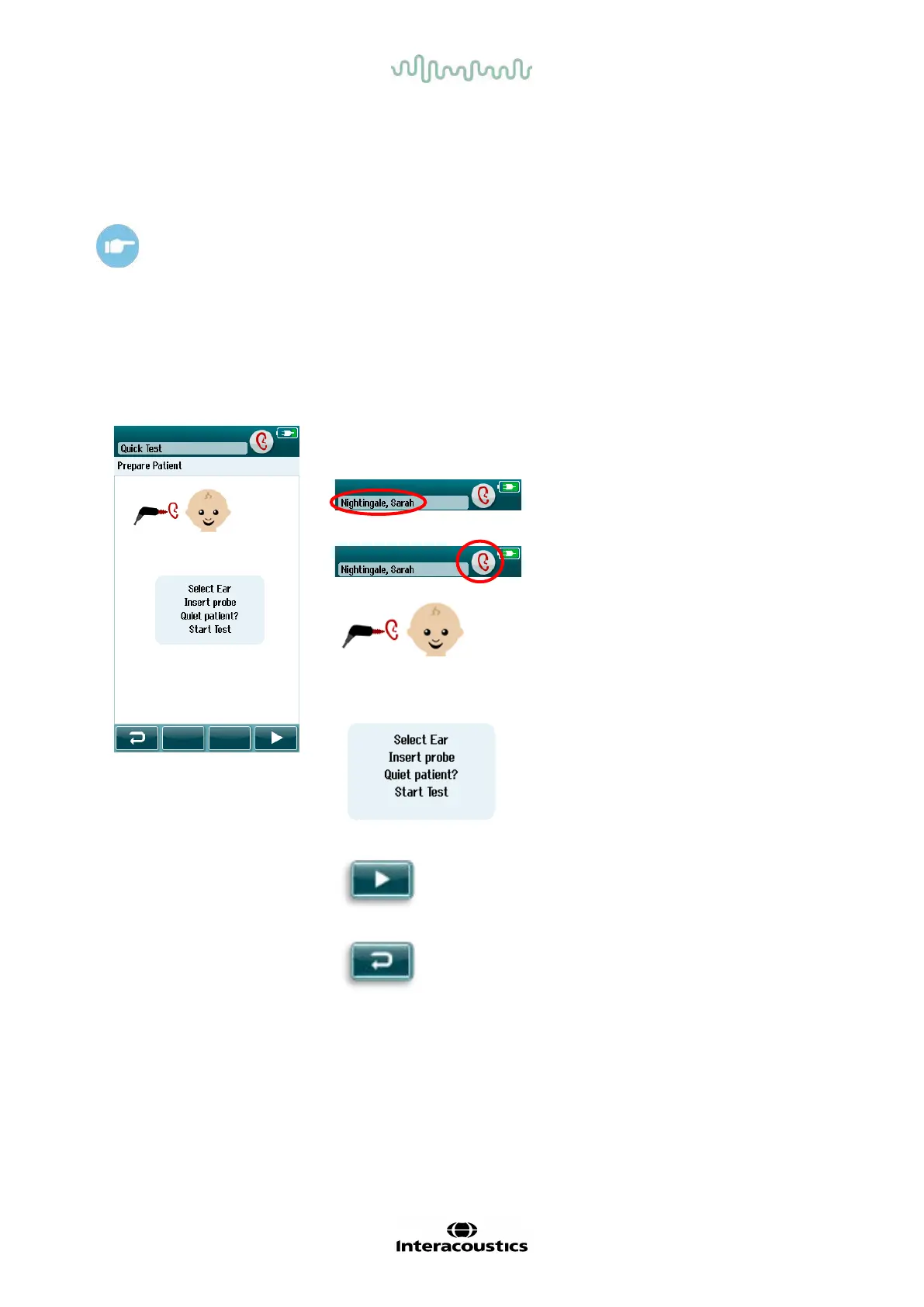 During OAE testing, the screens will change to reflect the processes taking place and the options available