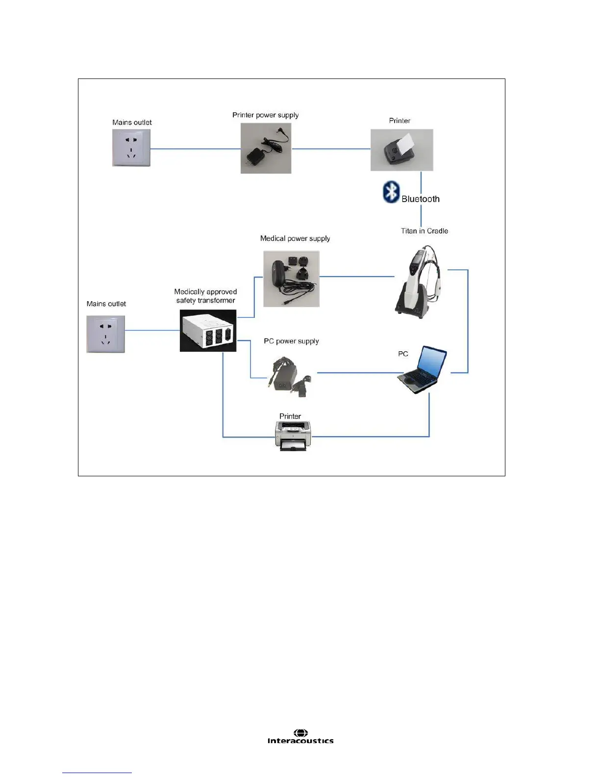 Fig. 7. Titan used with the Cradle, medically approved safety transformer, wired connection to a PC,