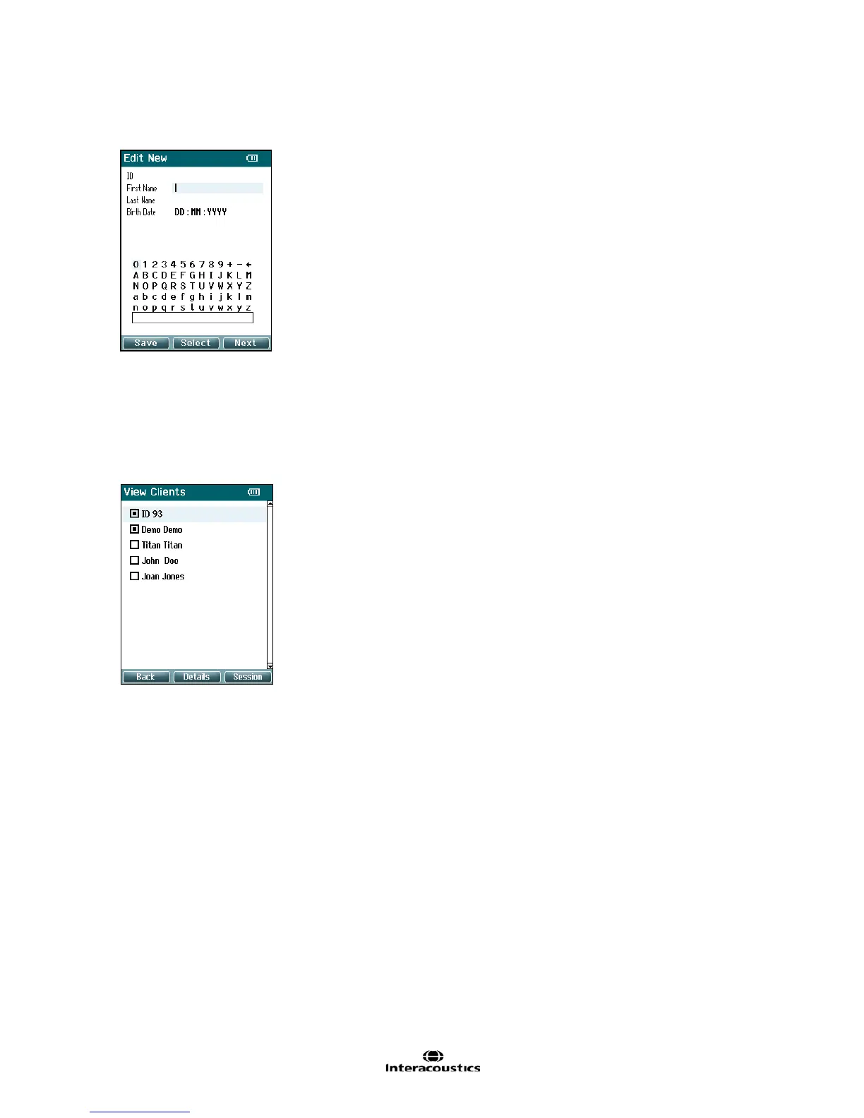 hand held unit. When one or more sessions are stored on the Titan, the box in front of the client’s name is