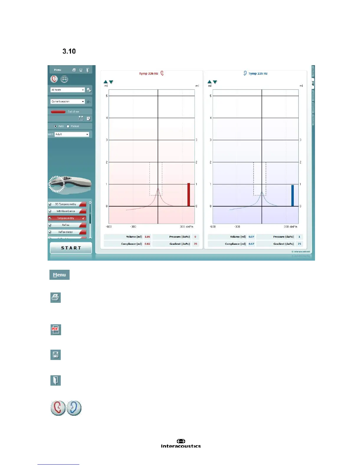 Toggle Ear changes from right to left ear and vice versa in all modules.