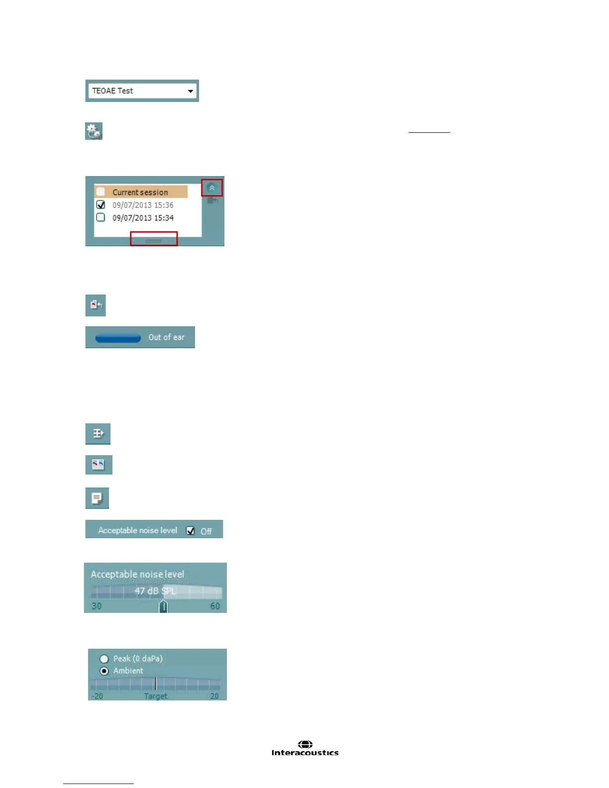 selected ear (blue for left and red for right). When the probe is