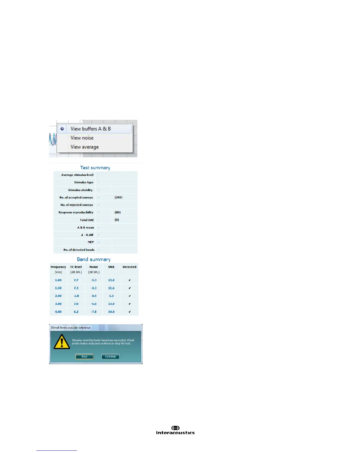 protocol setup, the stimulus levels outside tolerance pop-up
