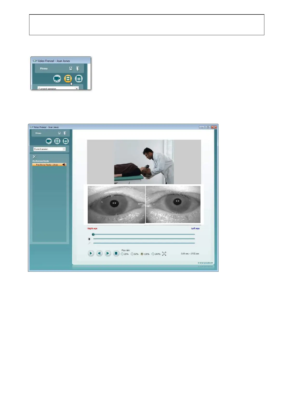 Select the video to playback by clicking the appropriate test in the Performed Tests list.
