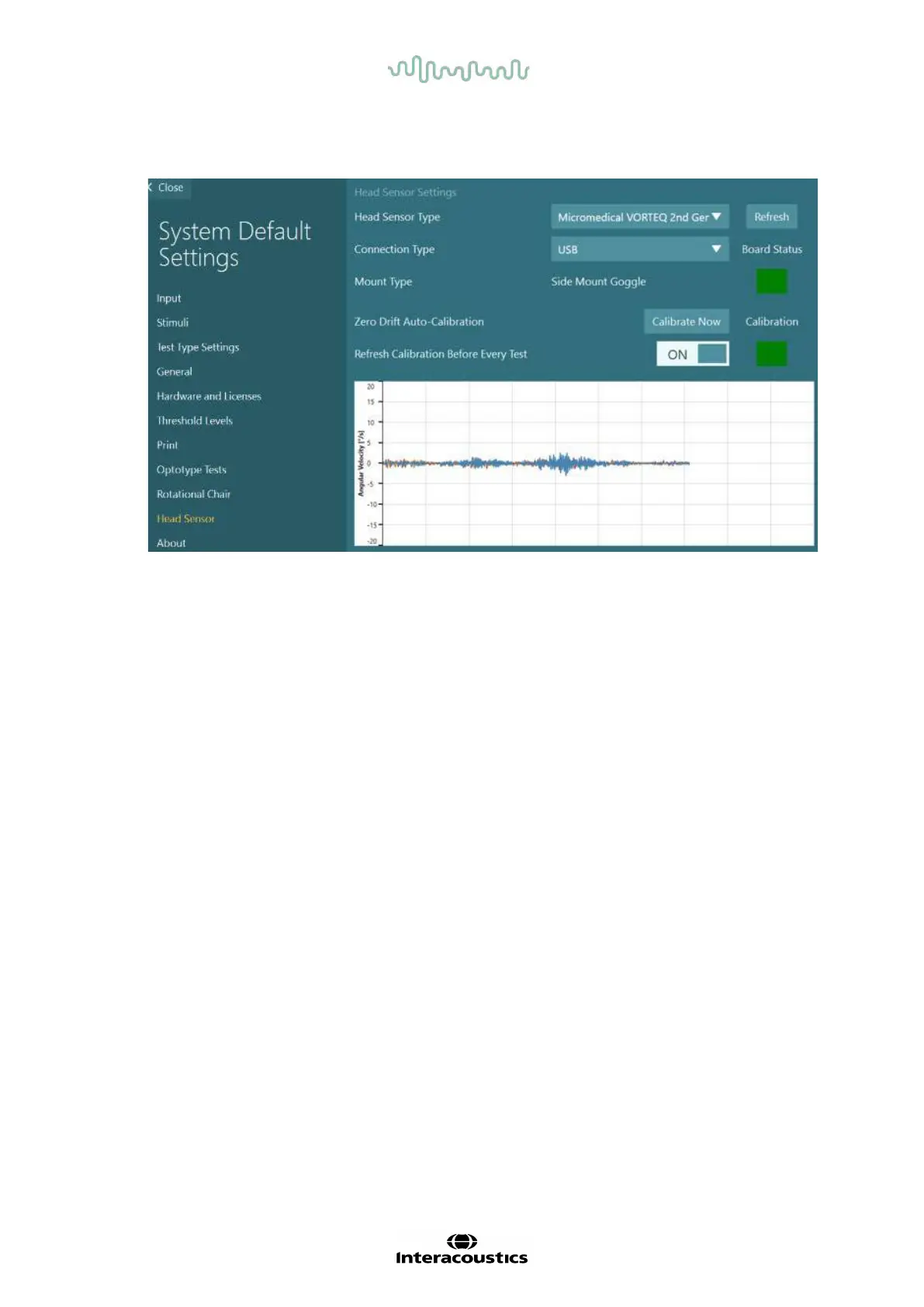 Figure 2.6-19: Configuration of VORTEQ™ 2nd Generation IMU in System Default Settings > Head Sensor