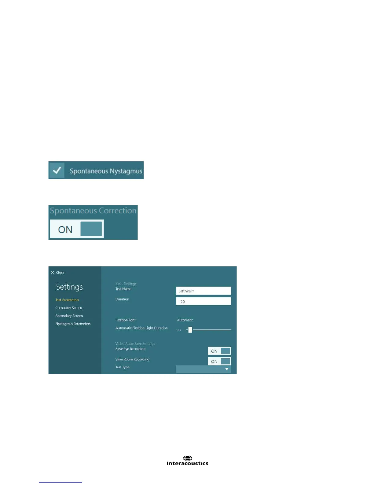 Before the caloric irrigation test is performed, a spontaneous nystagmus (SPN) test can be recorded. This is