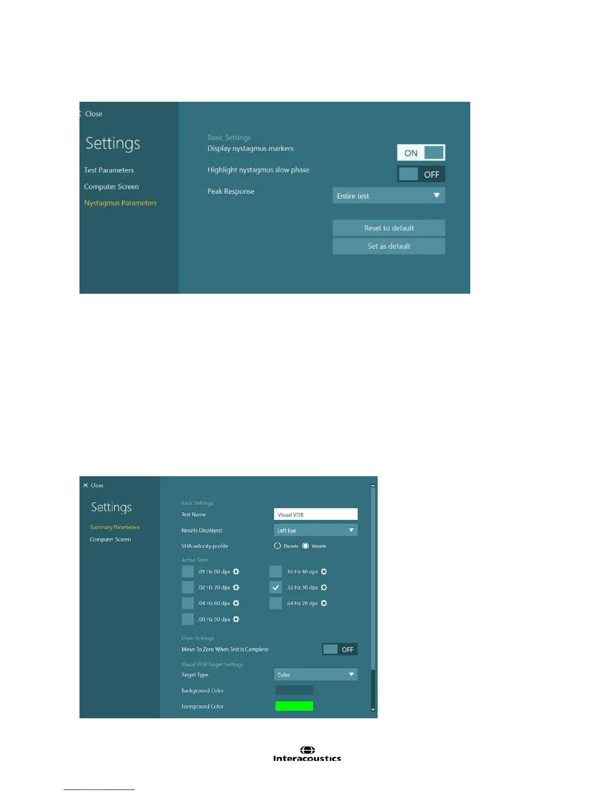 Display nystagmus markers: Enabling this feature will display a marker i.e. triangle above the nystagmus