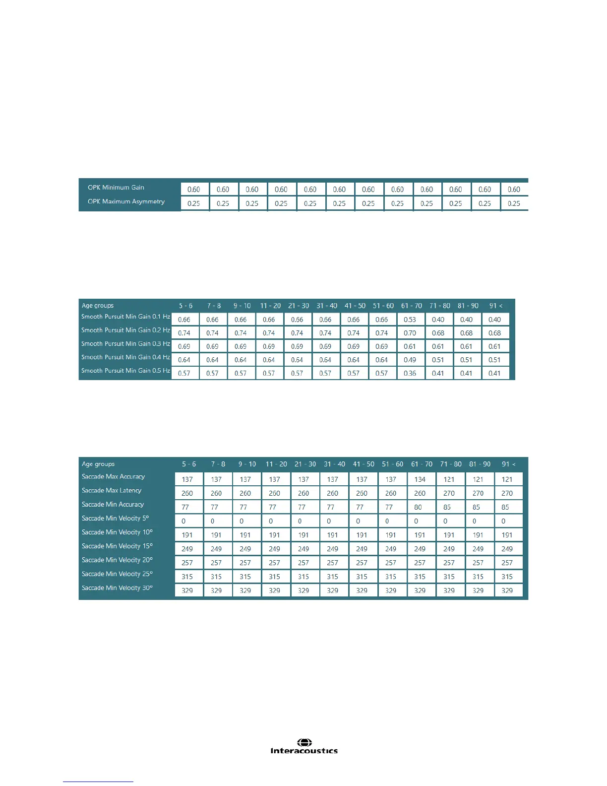will be labeled as outside threshold. Smooth Pursuit threshold data does vary based on the patient’s age.