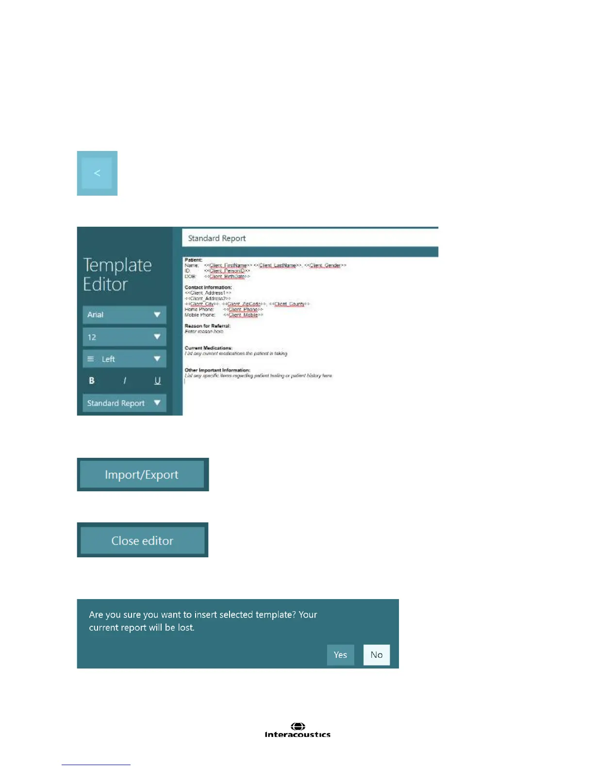 VisualEyes™ 515/525 will ask to confirm replacing the report with selected report template.