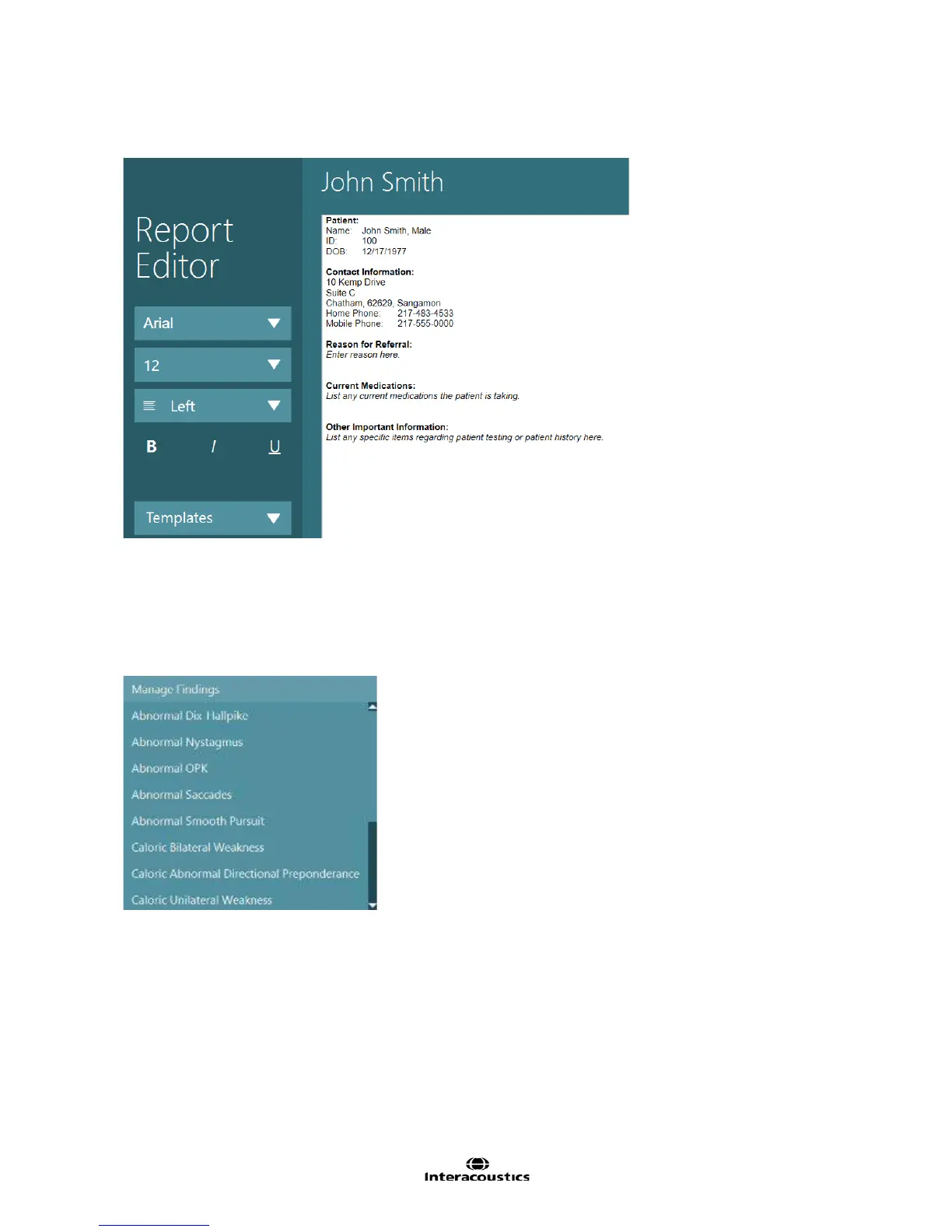 demographics entered into OtoAccess™. Fields that are not filled will be blank in the report.