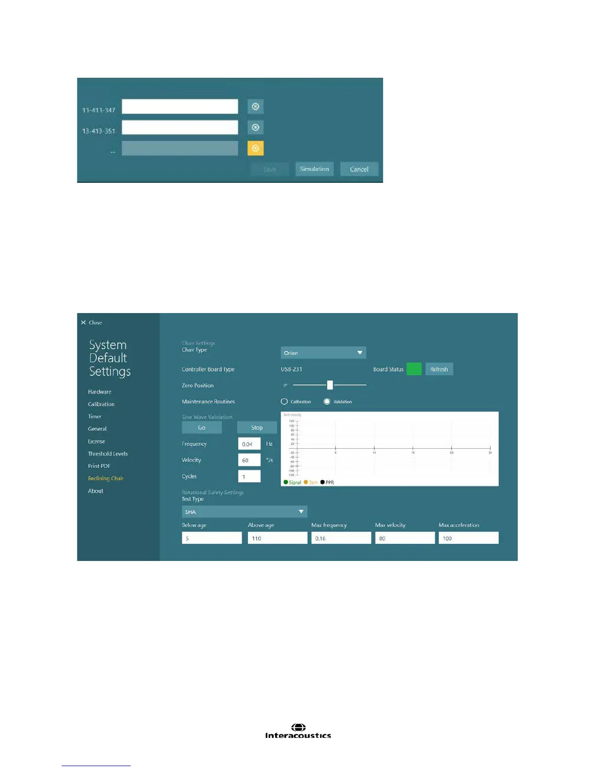 Figure 12.8.1 Reclining Chair settings (Orion chair selected)