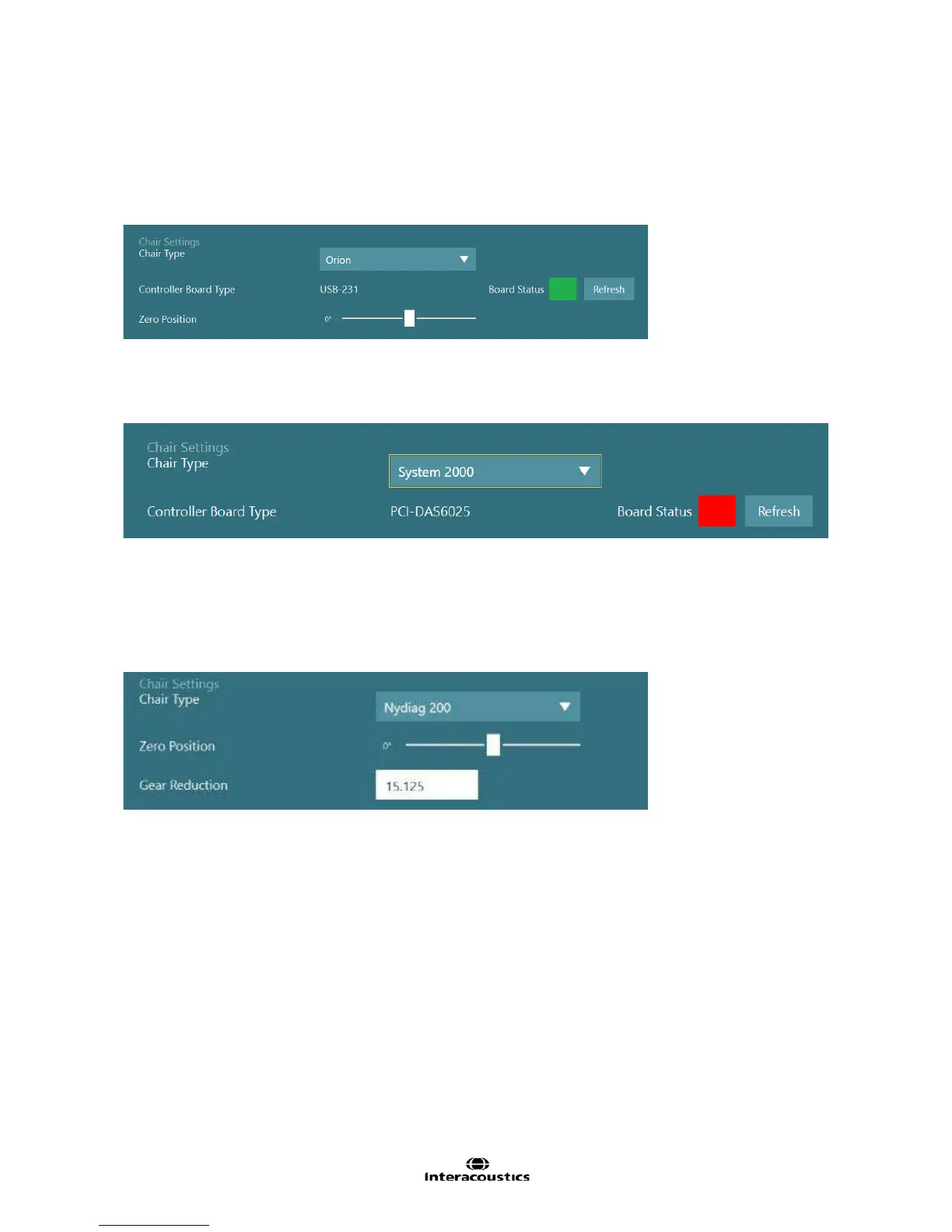 If the Orion reclining chair is selected, then the Controller Board Type will be using USB-231 board. The