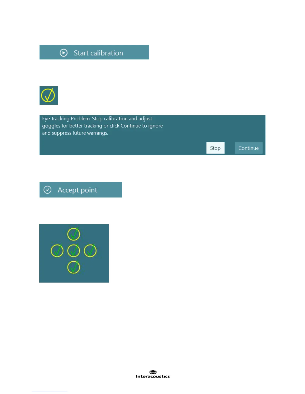 Ask the patient to look at the first calibration point. After a few seconds of fixation a target confirmed mark