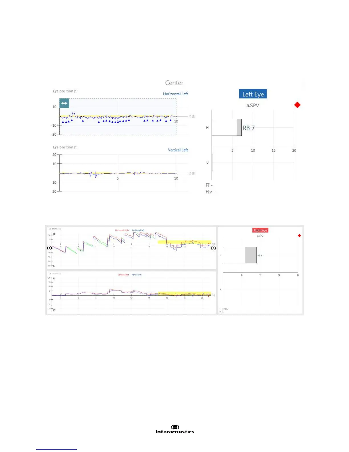 measured in degrees/second and displayed in the result graph beside the waveform. In nystagmus tests the