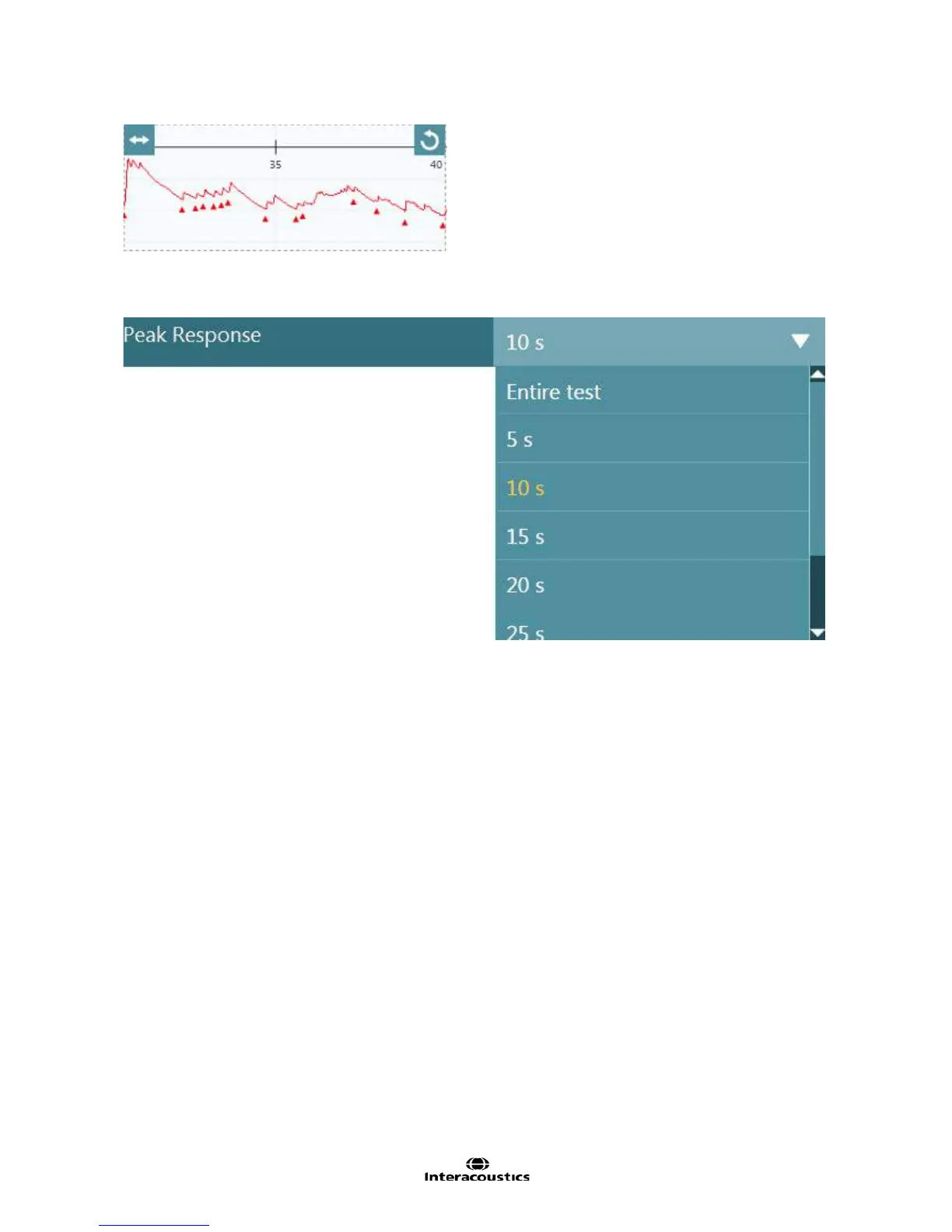The time for determining peak response can be set in the test settings under Nystagmus parameters. The
