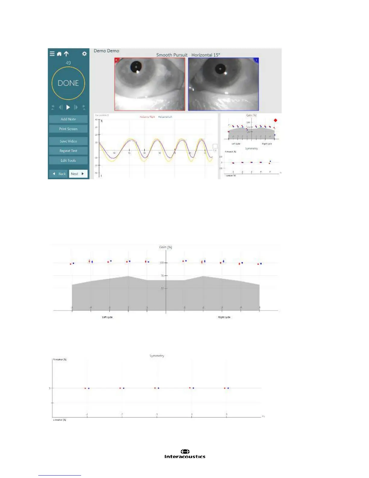 is measured for each cycle and displayed on the gain graph as a small dot in either blue (for left eye) or red