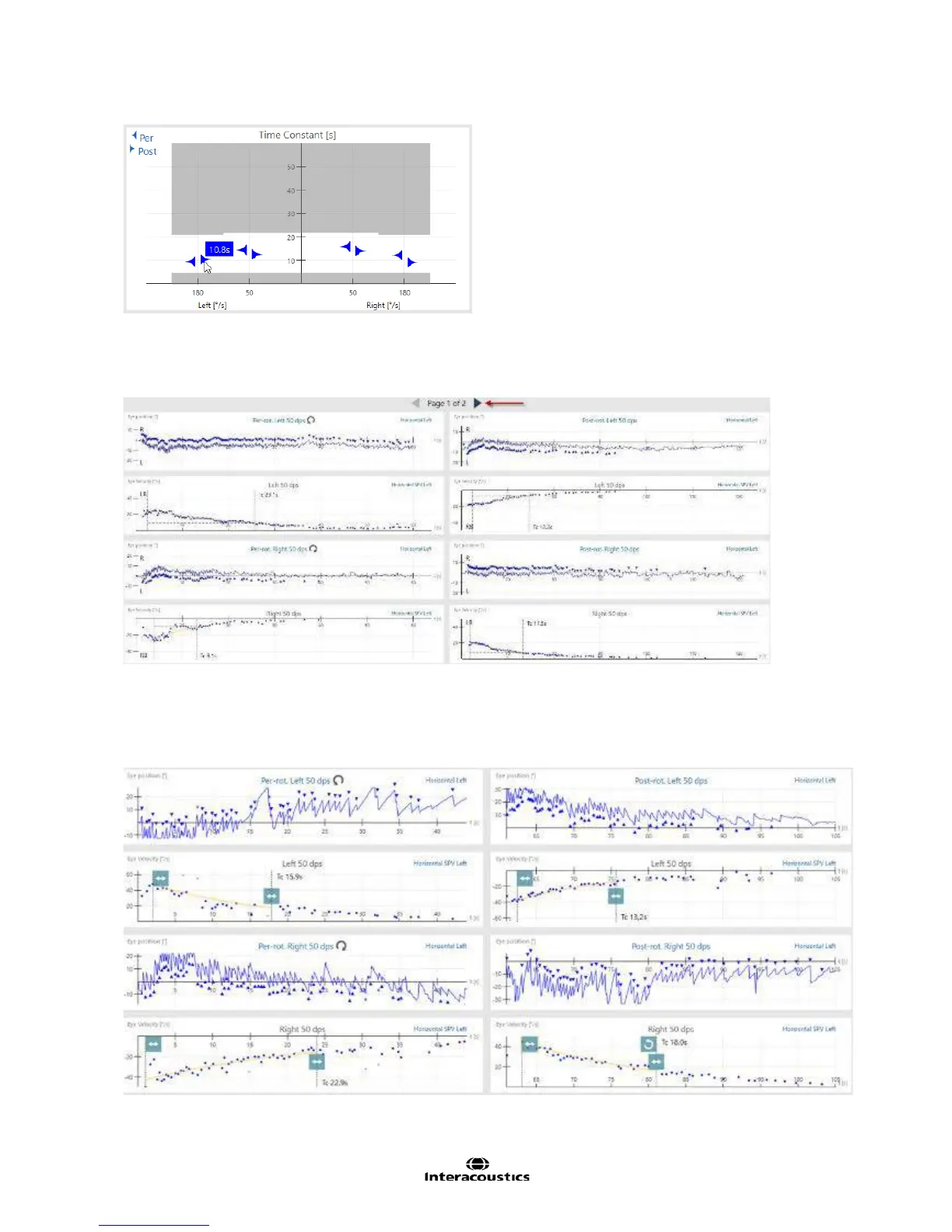 Figure 3.6.27 Raw eye movement data and time constant data for per and post rotary stimuli
