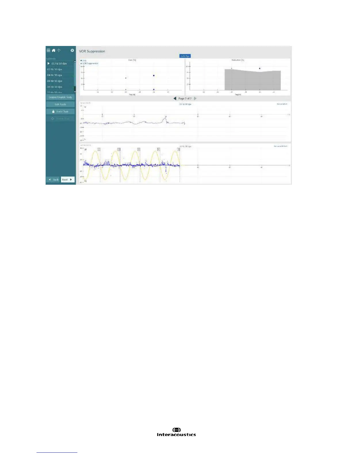 The software will automatically compare the patient’s gain during a VOR suppression test to the gain during