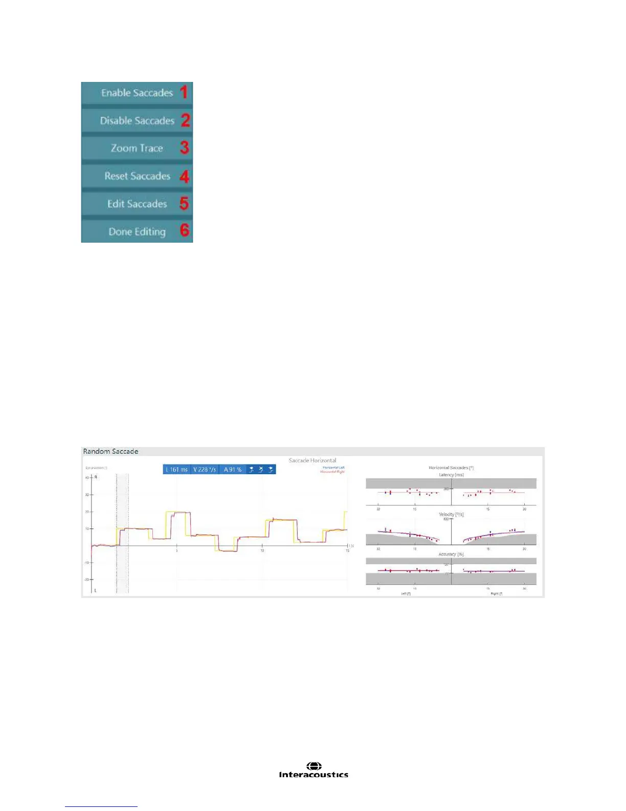 saccade and next saccade buttons or the left and right arrows on the keyboard to move through the