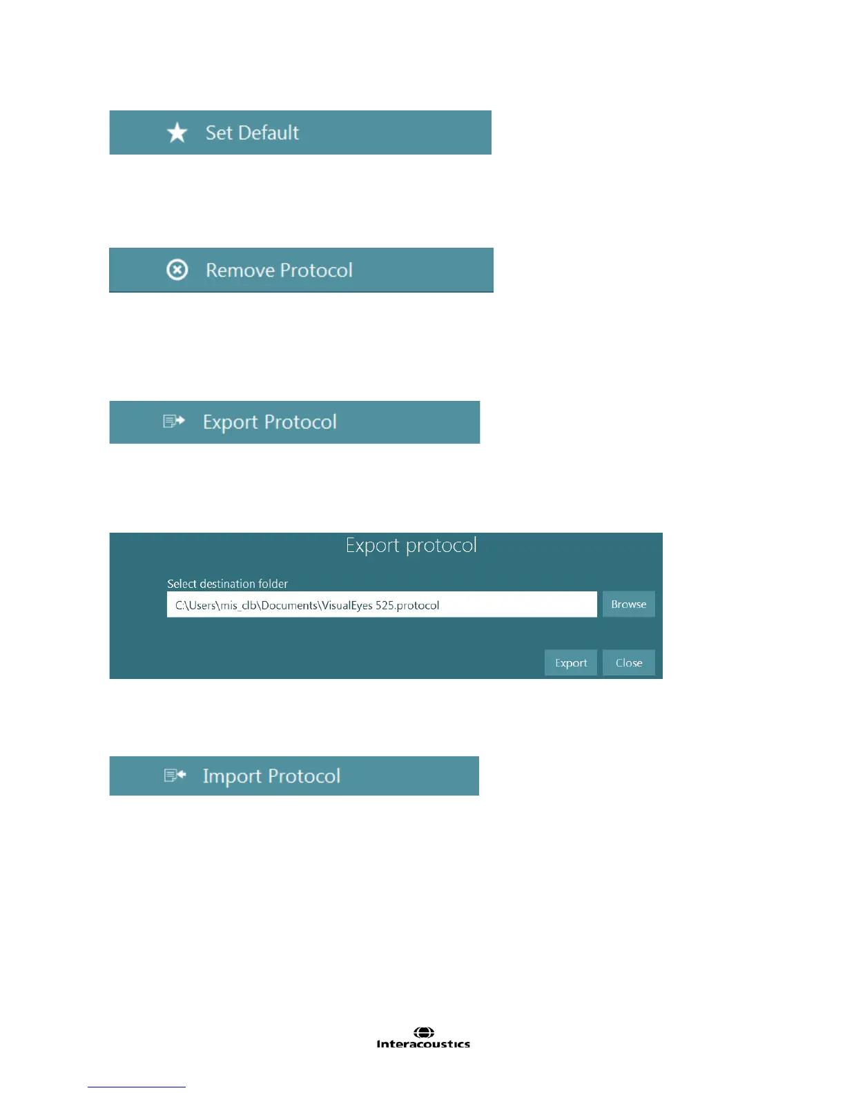 import into another VisualEyes™ 515/525 system). Once imported, the protocol can be edited or set as