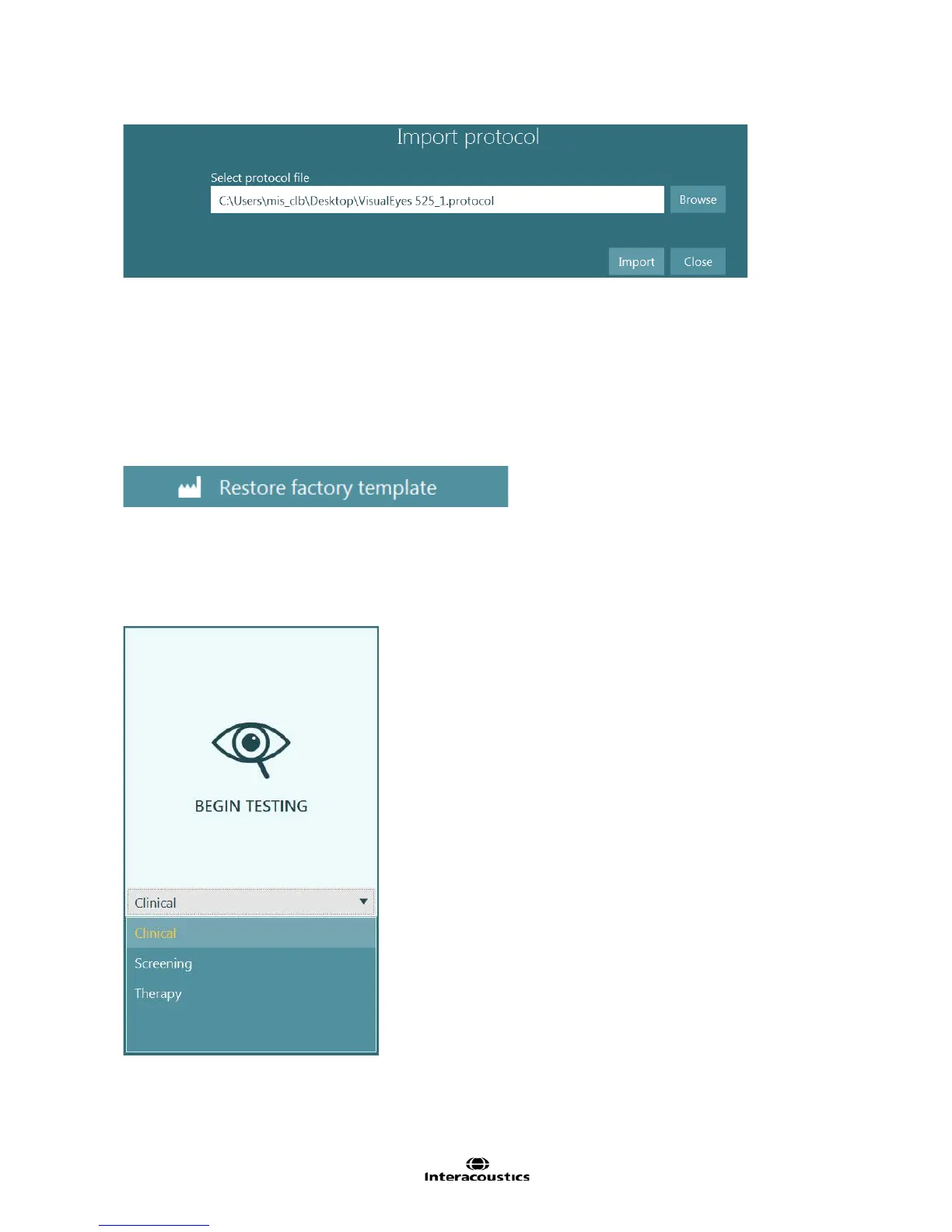 Figure 7.8.1 Begin Testing button with protocol selection