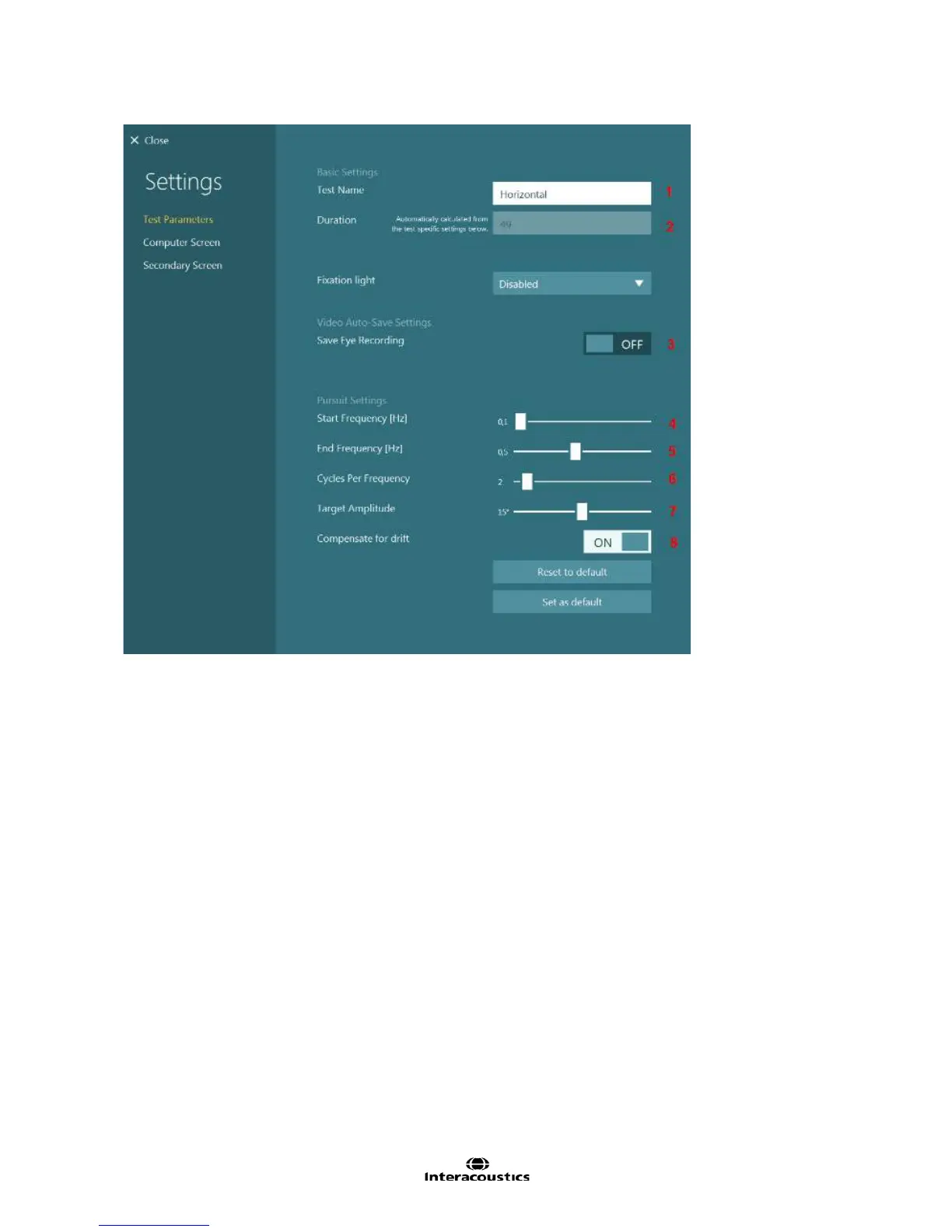 Figure 8.2.6 Smooth Pursuit subtest settings