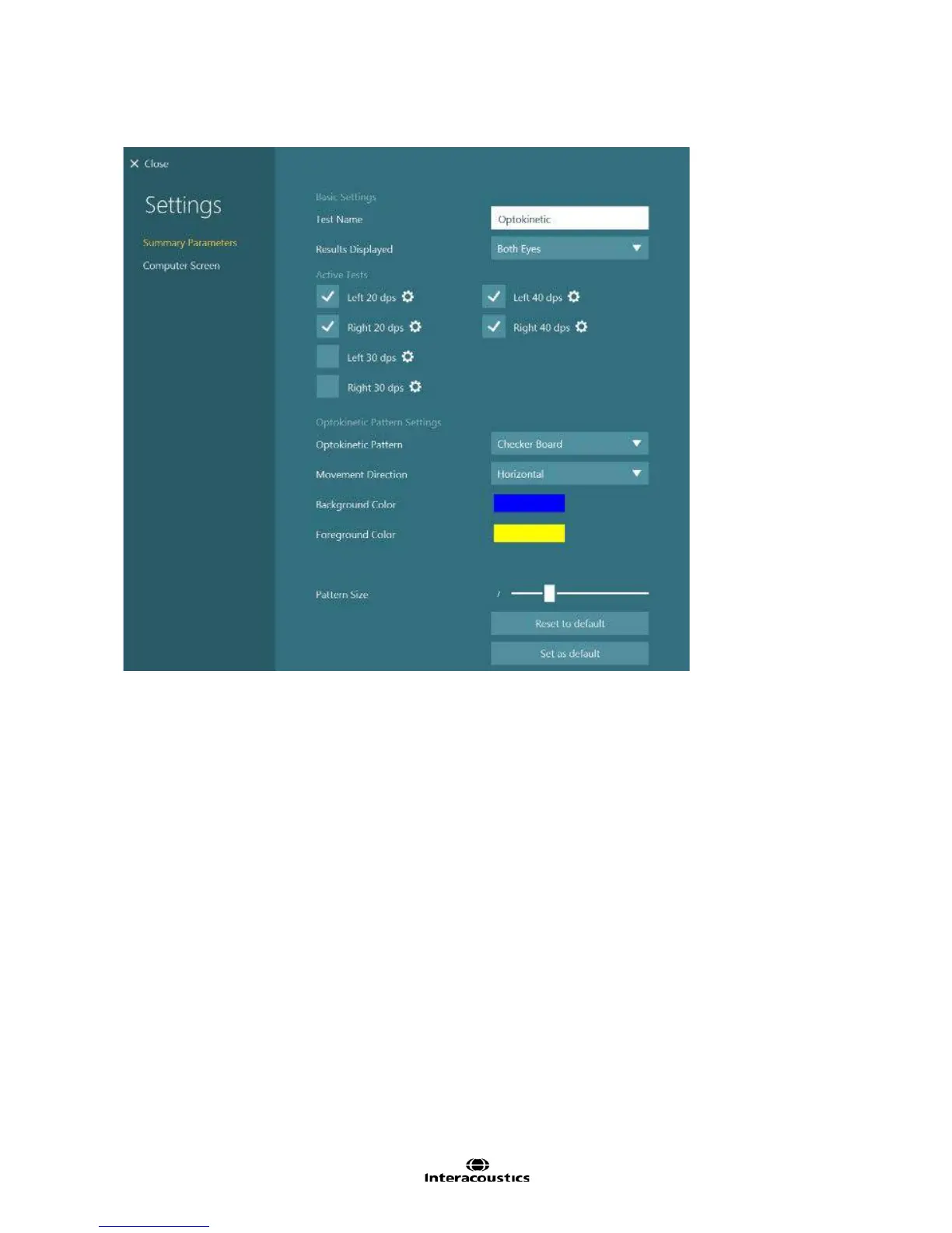 Figure 8.2.7 Optokinetic summary settings