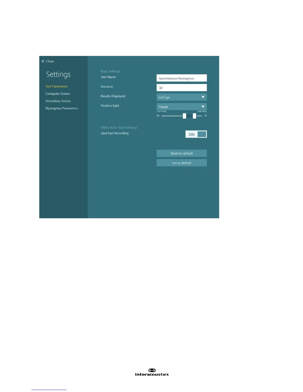 Figure 8.3.1 Spontaneous Nystagmus test settings