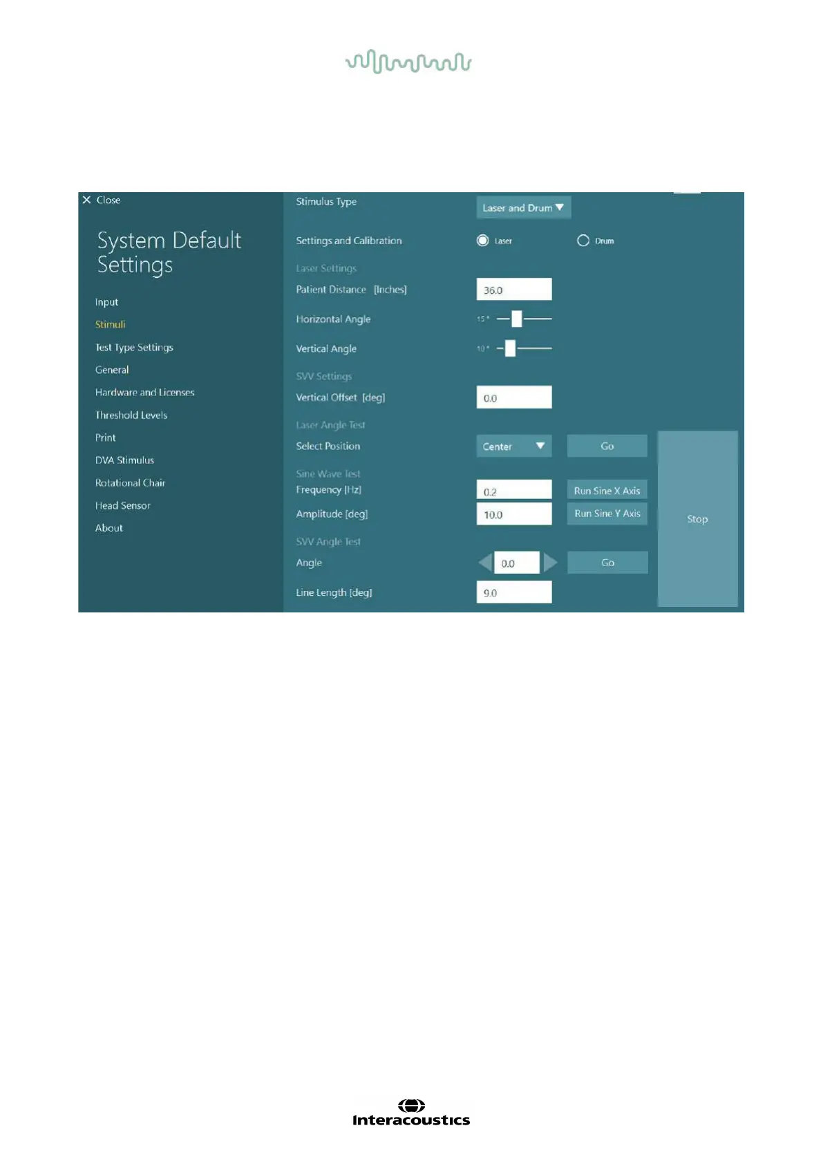 ”Drum”, and select the validation option. Click on ’Go’ for Sine Wave validation. The optokinetic lamp should