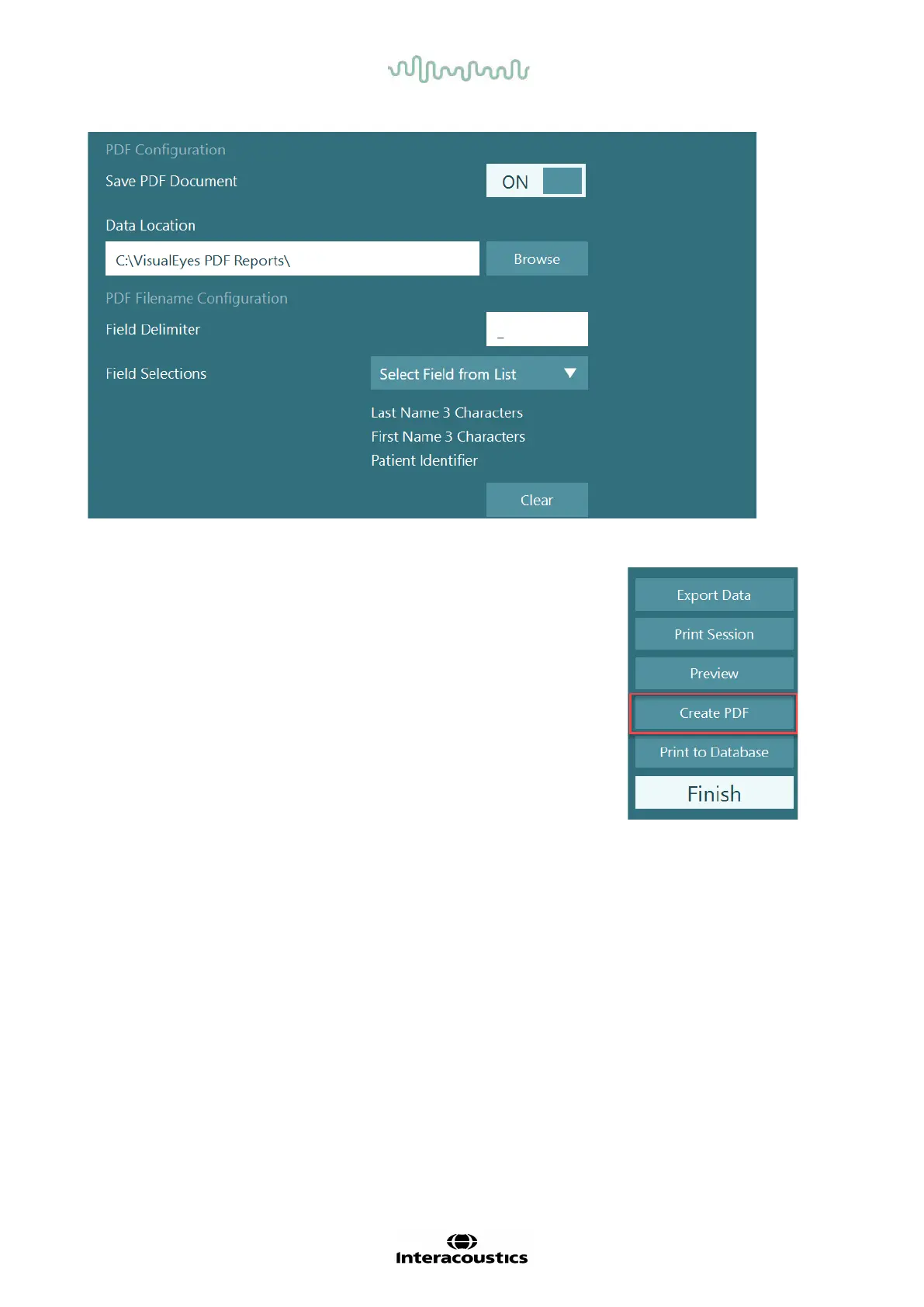 generate a PDF report in the selected data location, with the configured PDF