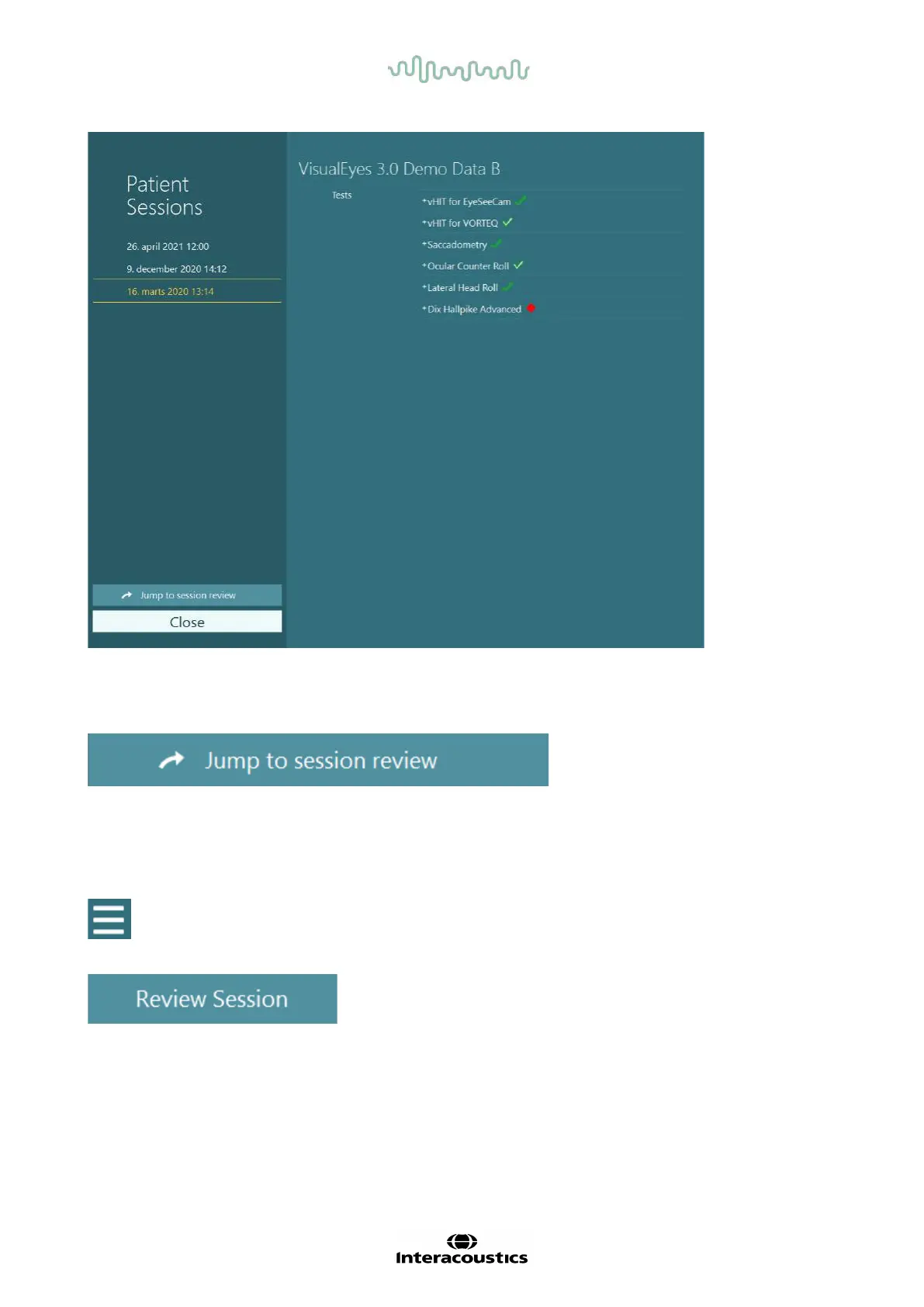 After selecting the patient session from the listing, click on the Jump to session review button to go to the