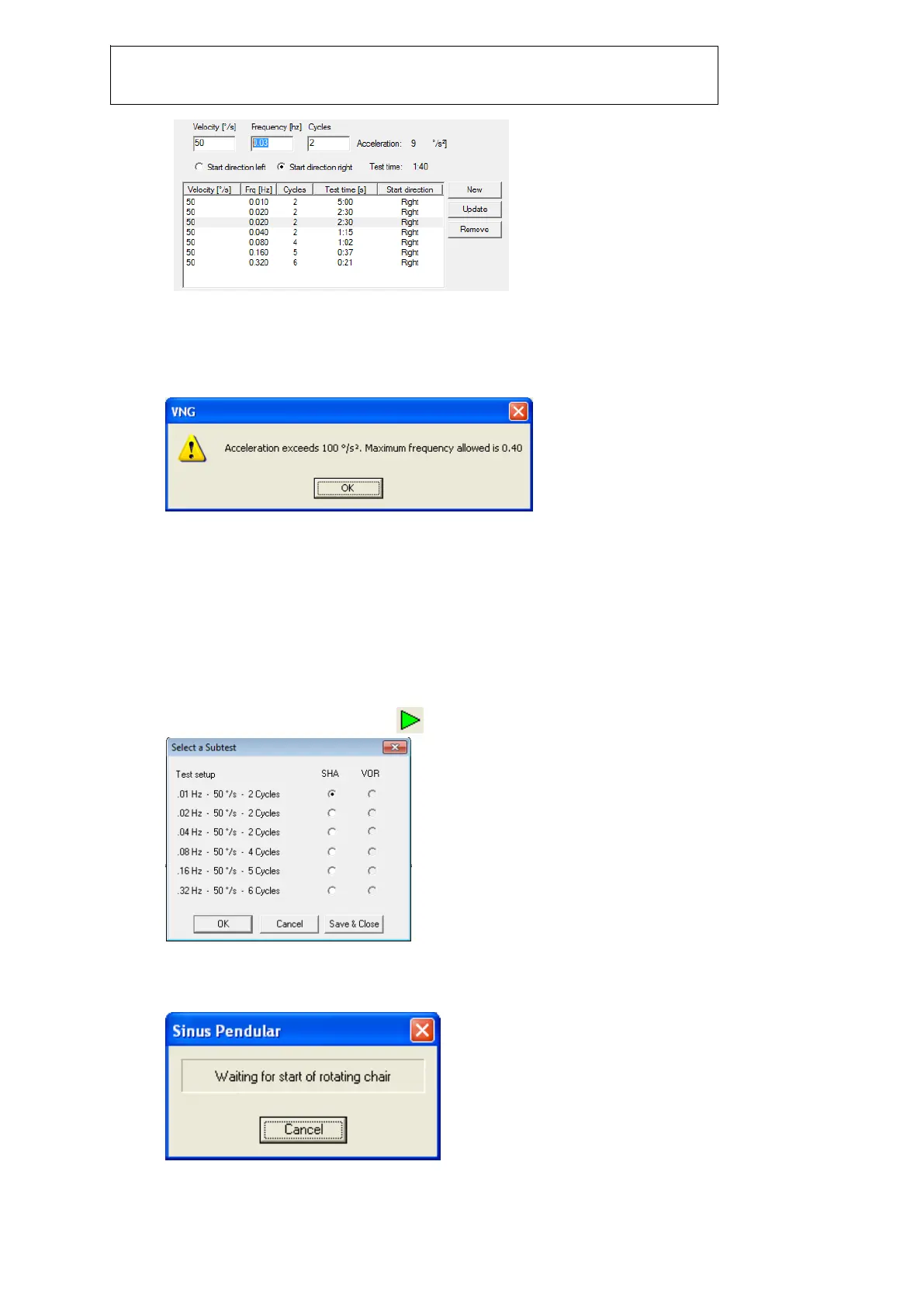 valt önskad frekvens räknar programvaran ut den resulterande accelerationen. När